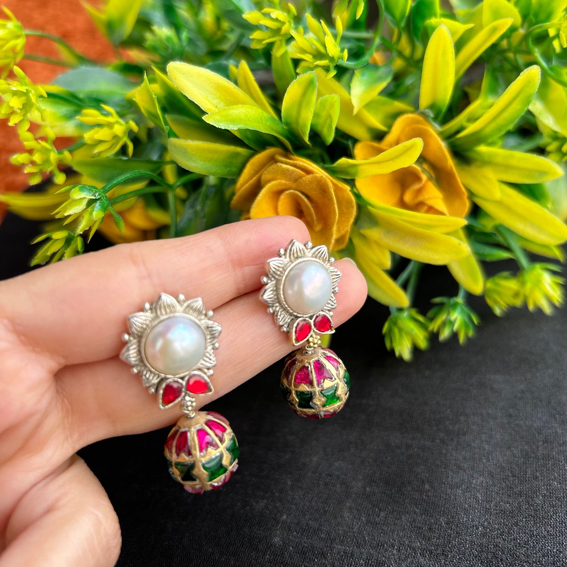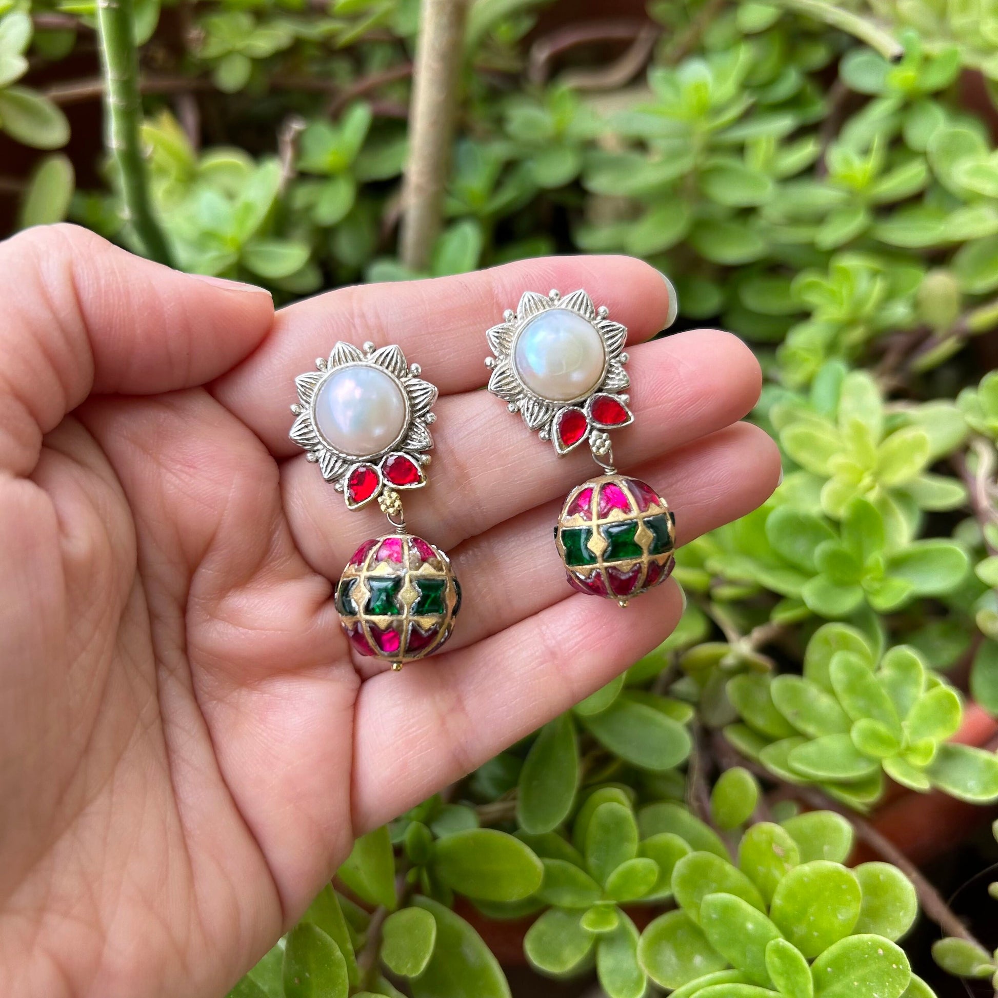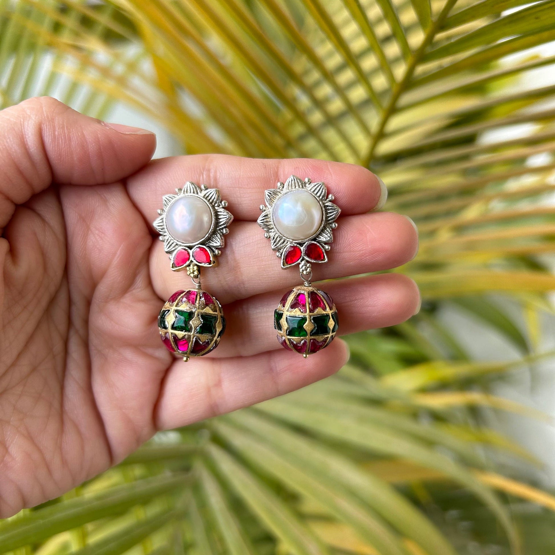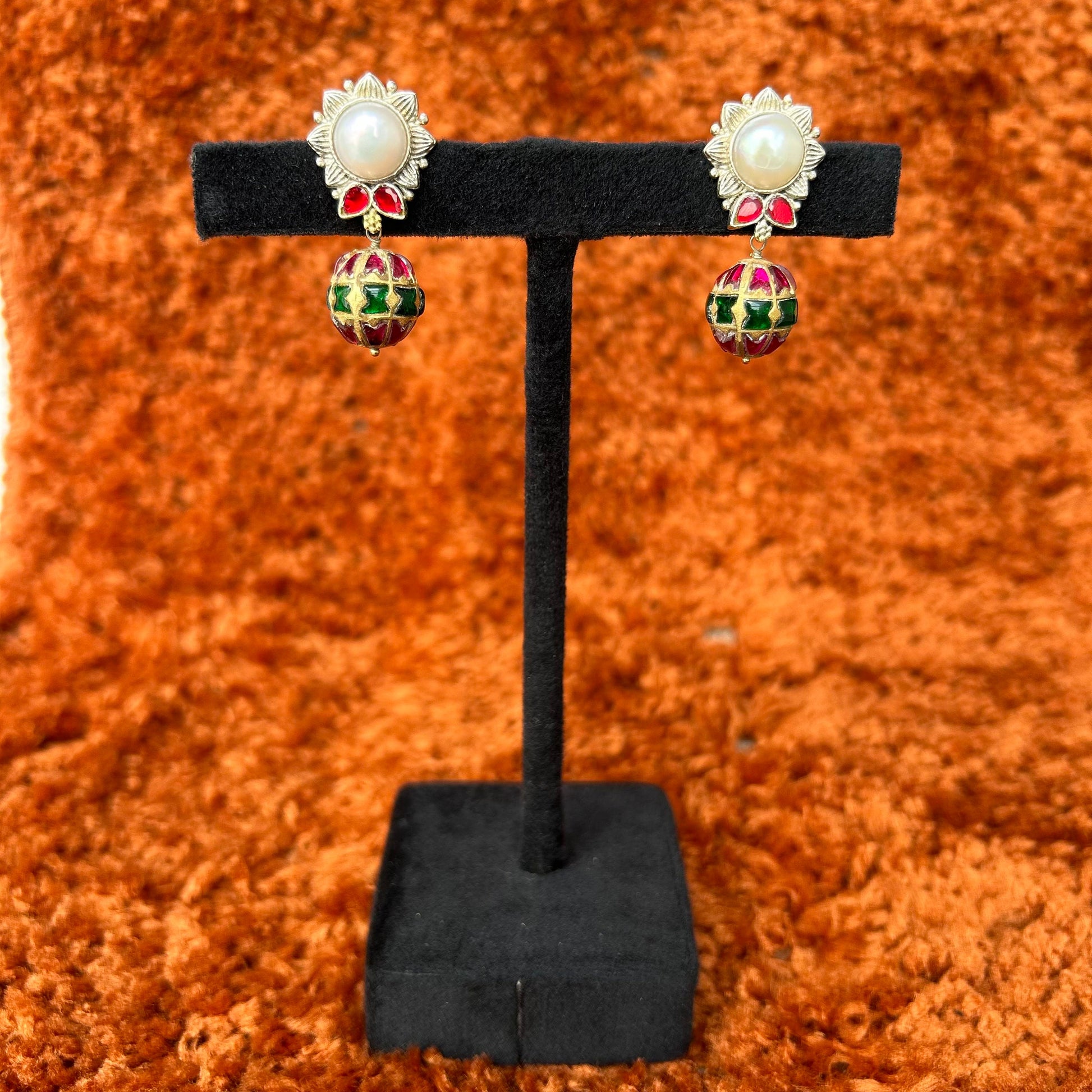 Design: Traditional statement earrings with a nature-inspired aesthetic.