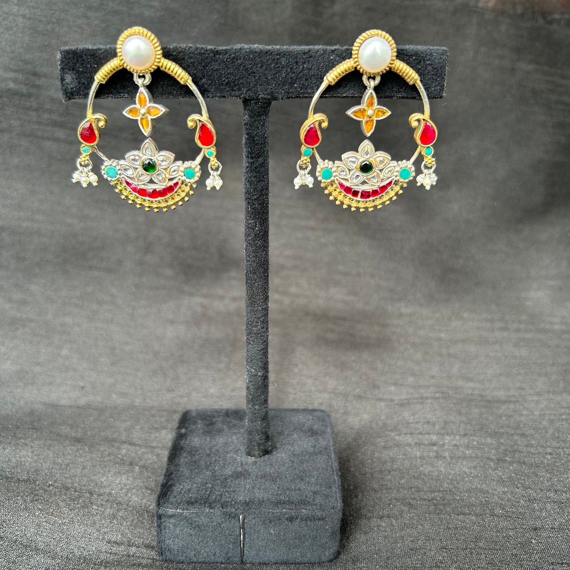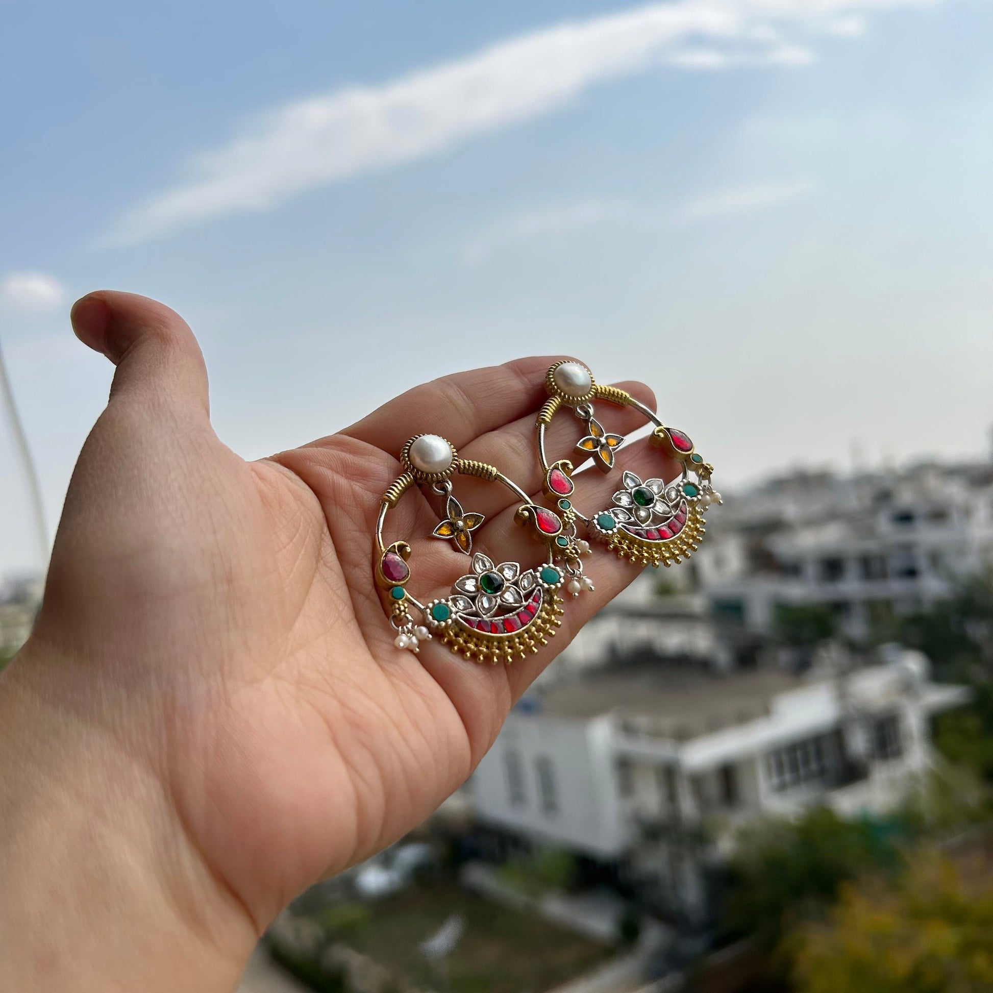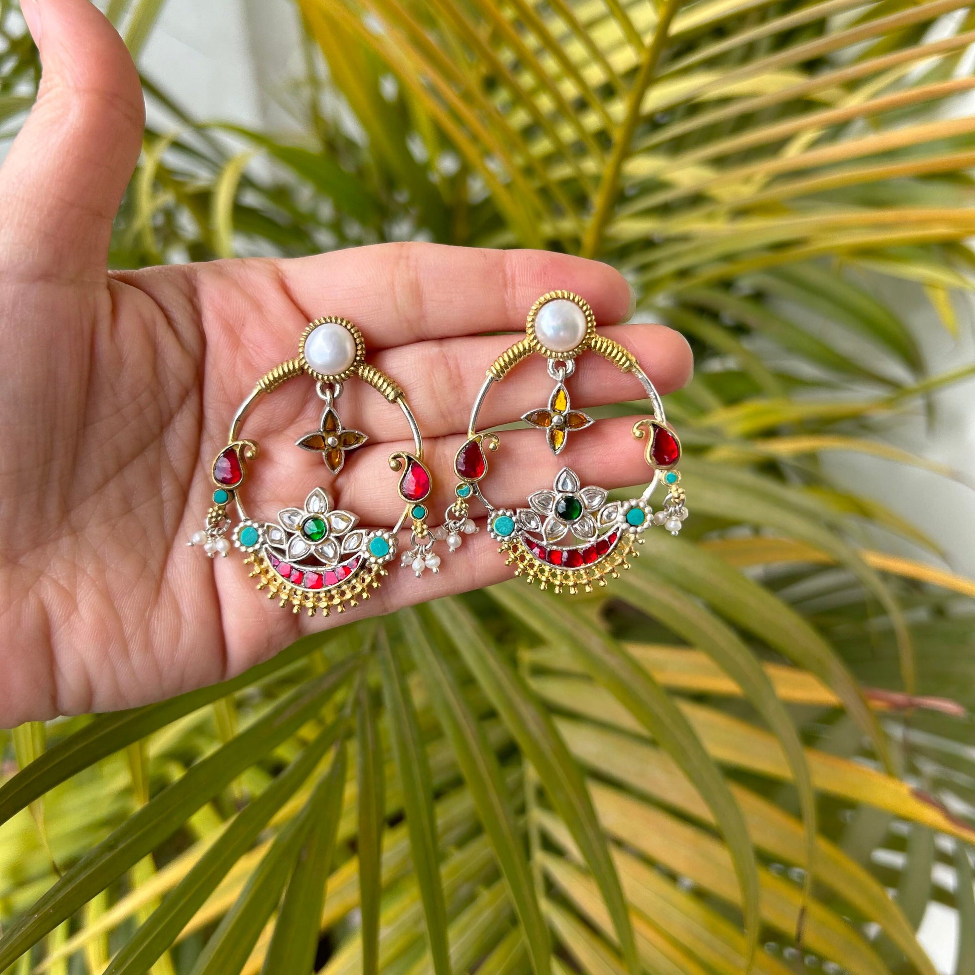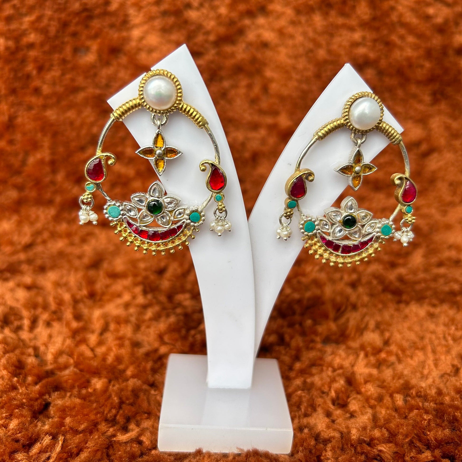 Inspired by traditional Indian craftsmanship, these statement earrings are a fusion of Mughal opulence and contemporary elegance.