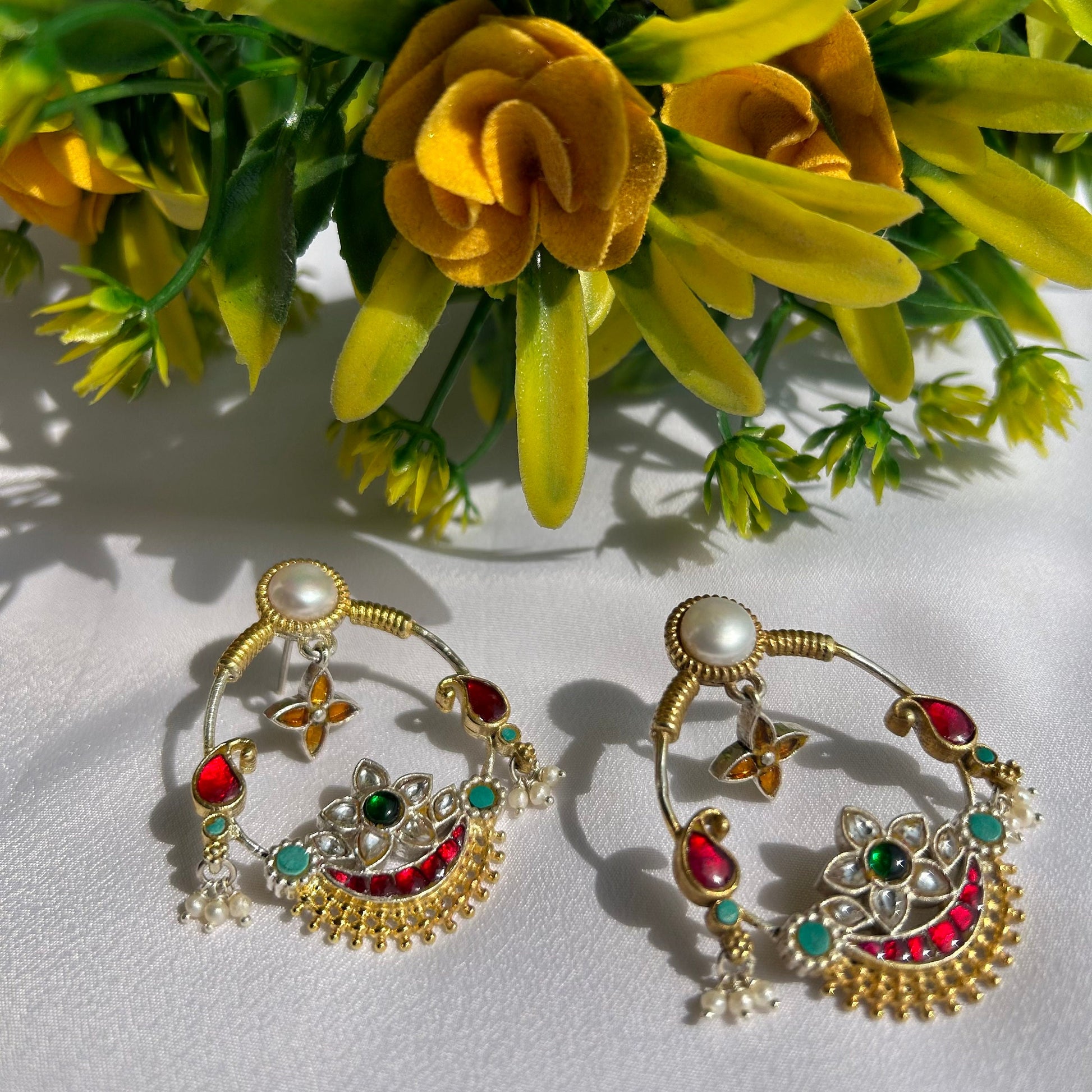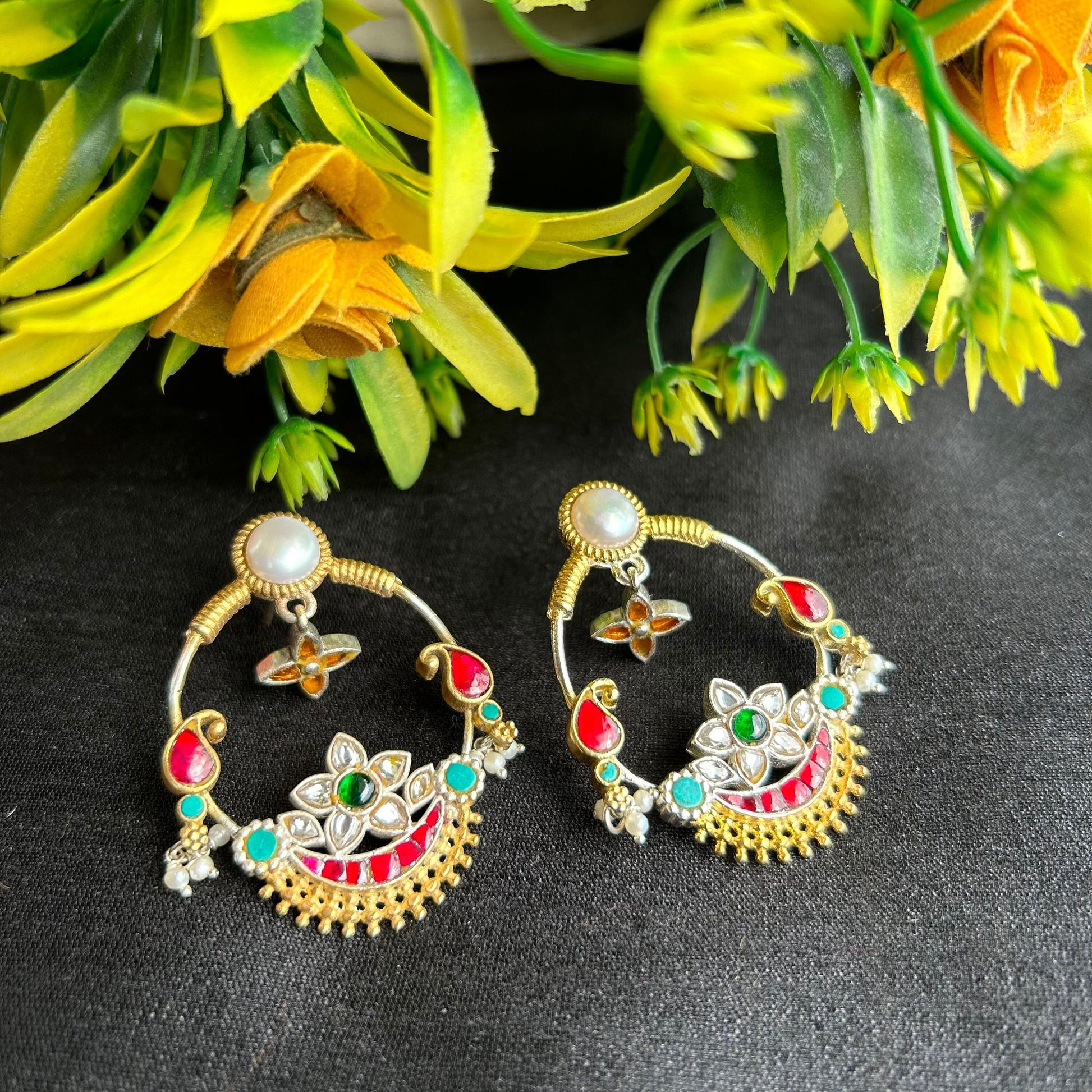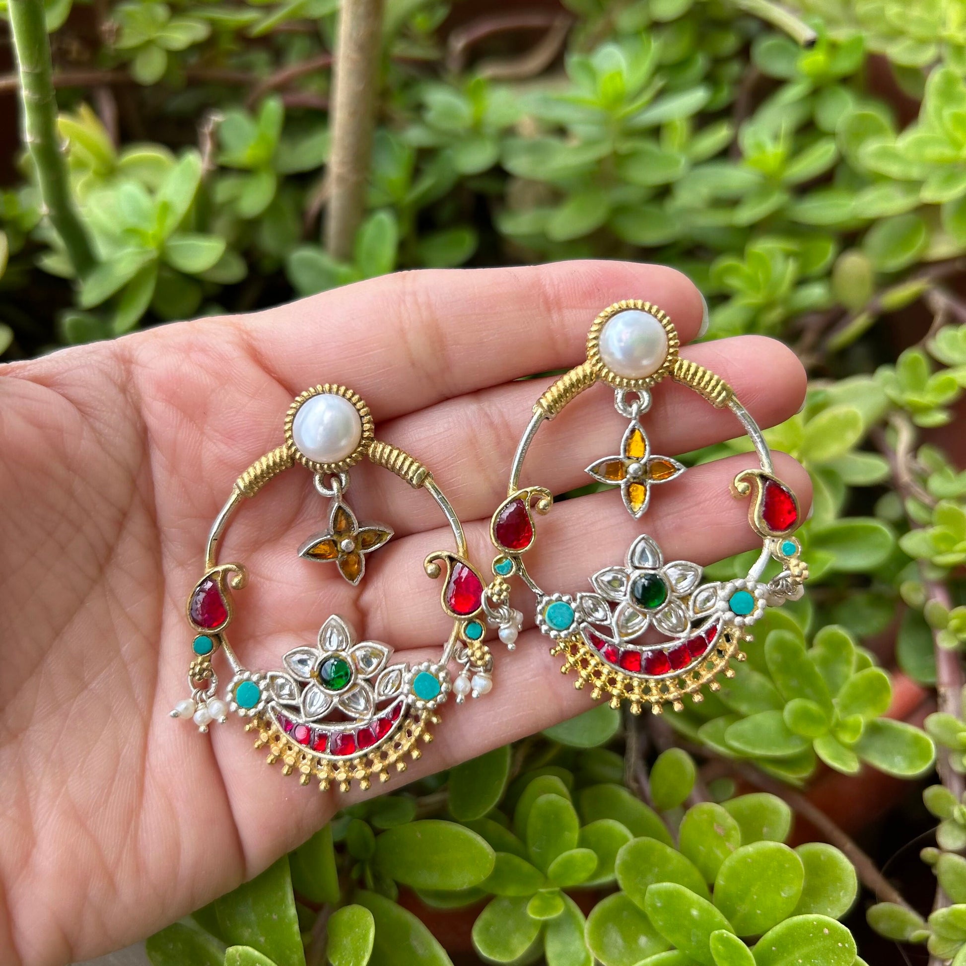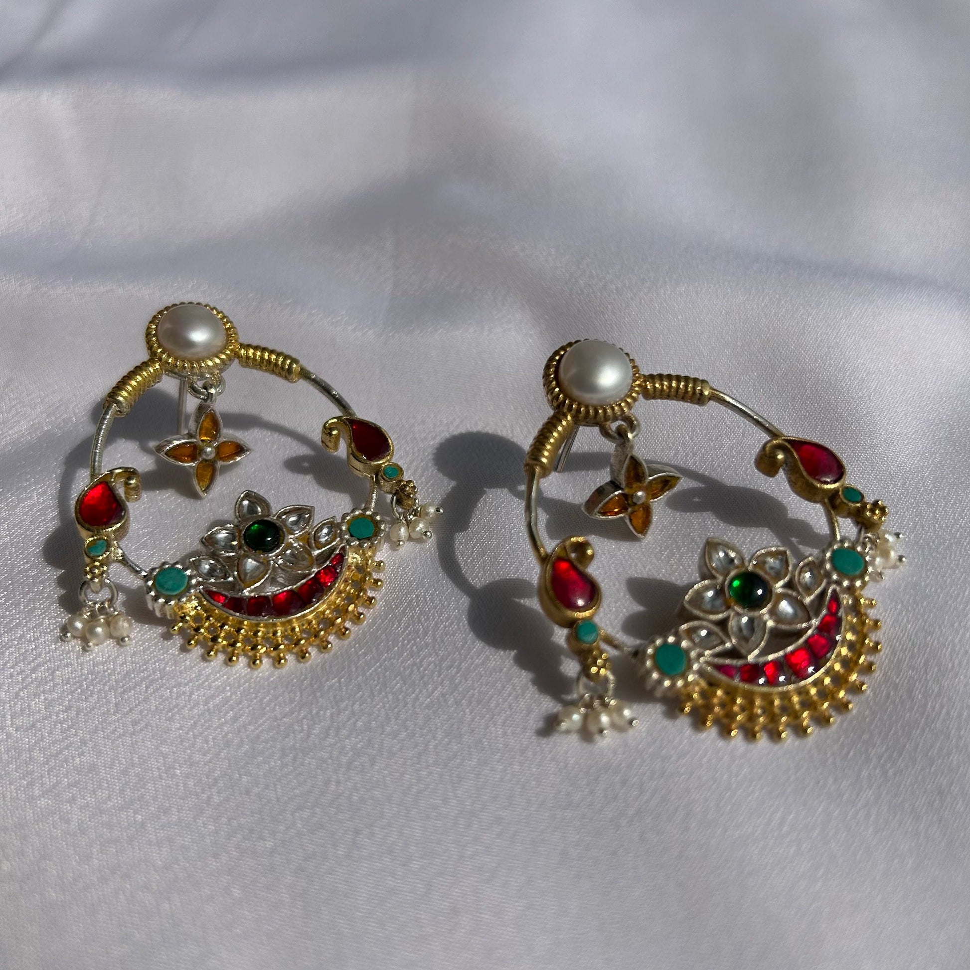 Inspired by traditional Indian craftsmanship, these statement earrings are a fusion of Mughal opulence and contemporary elegance.