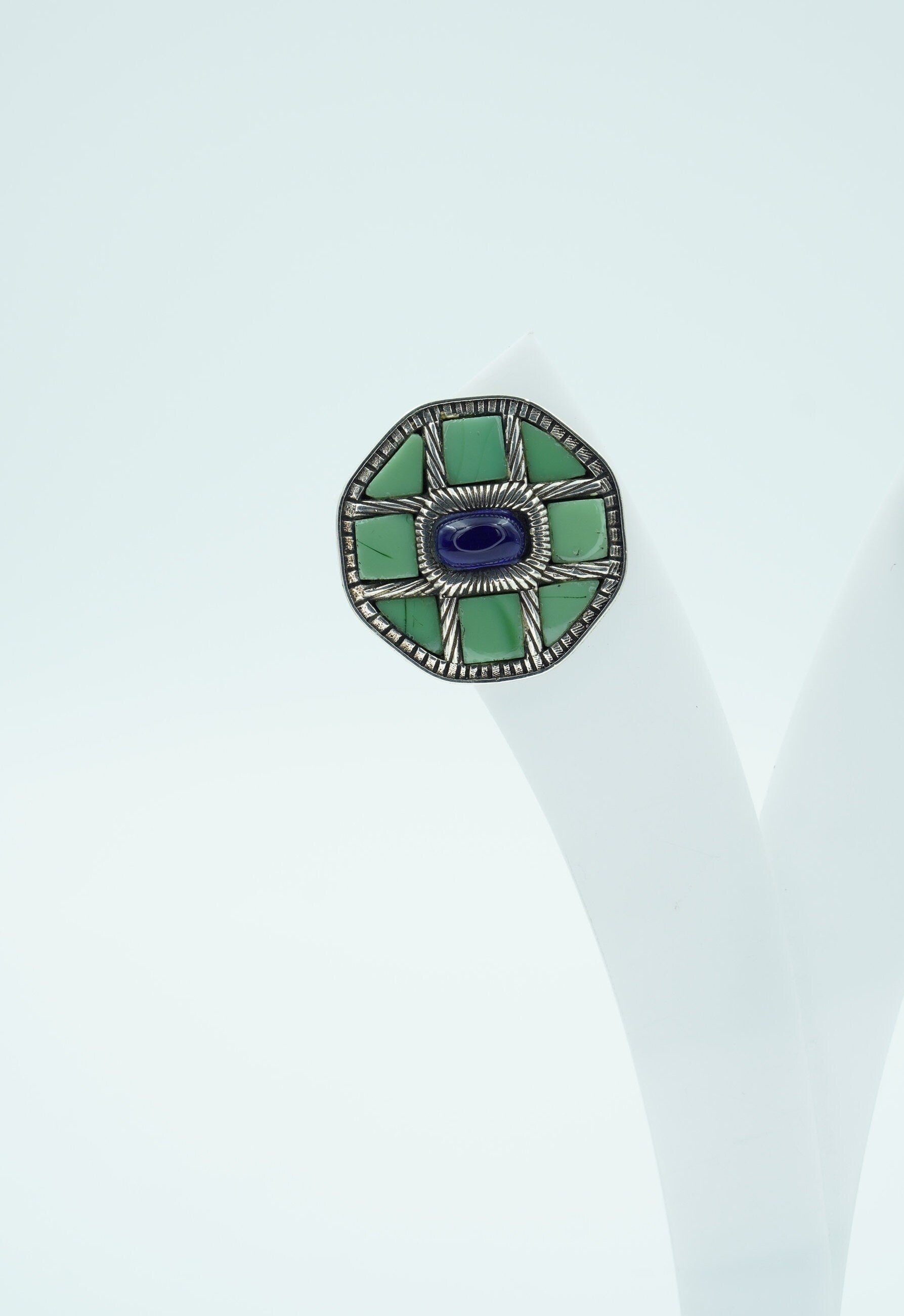 Material: Pure 925 Sterling Silver with green and blue stones.