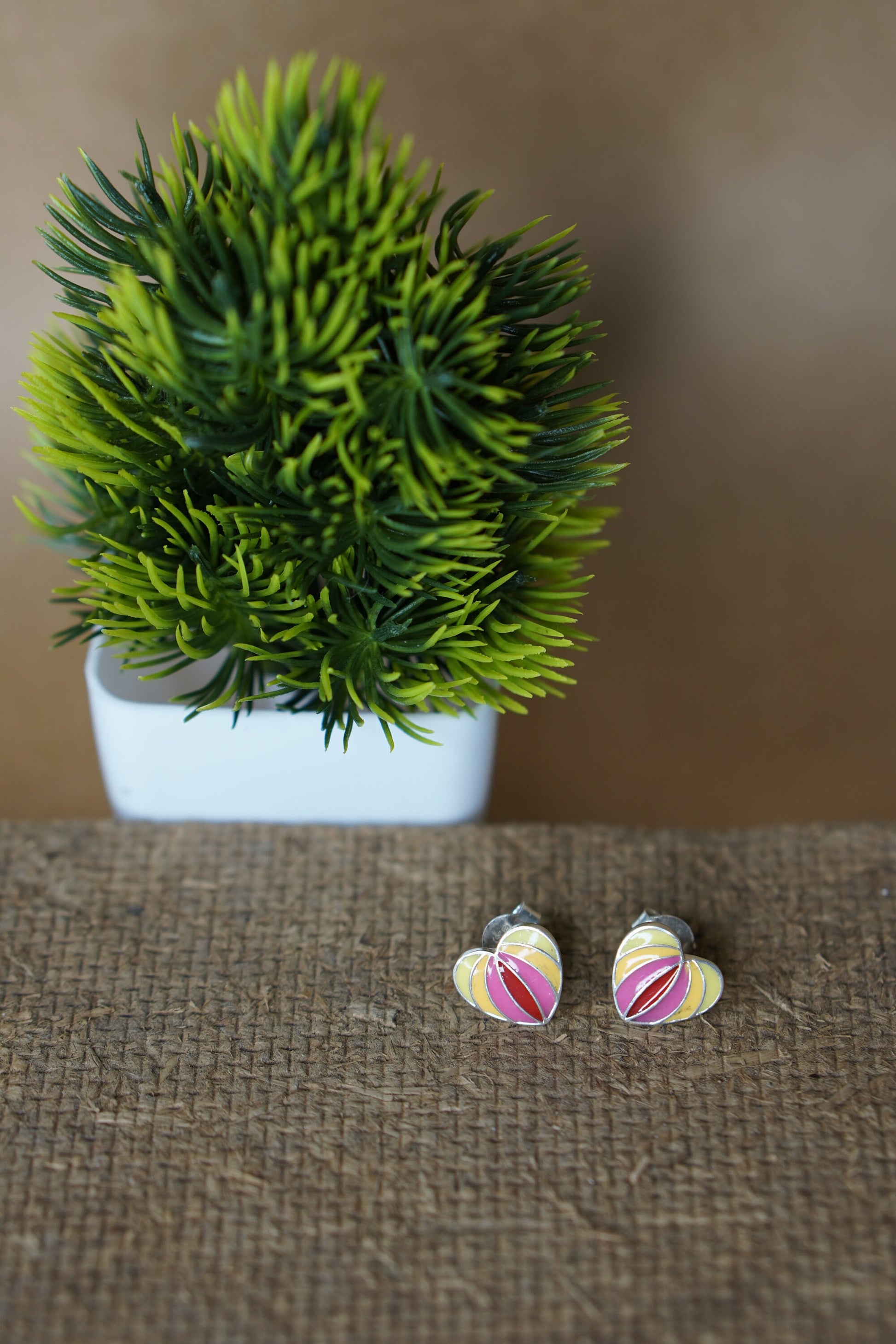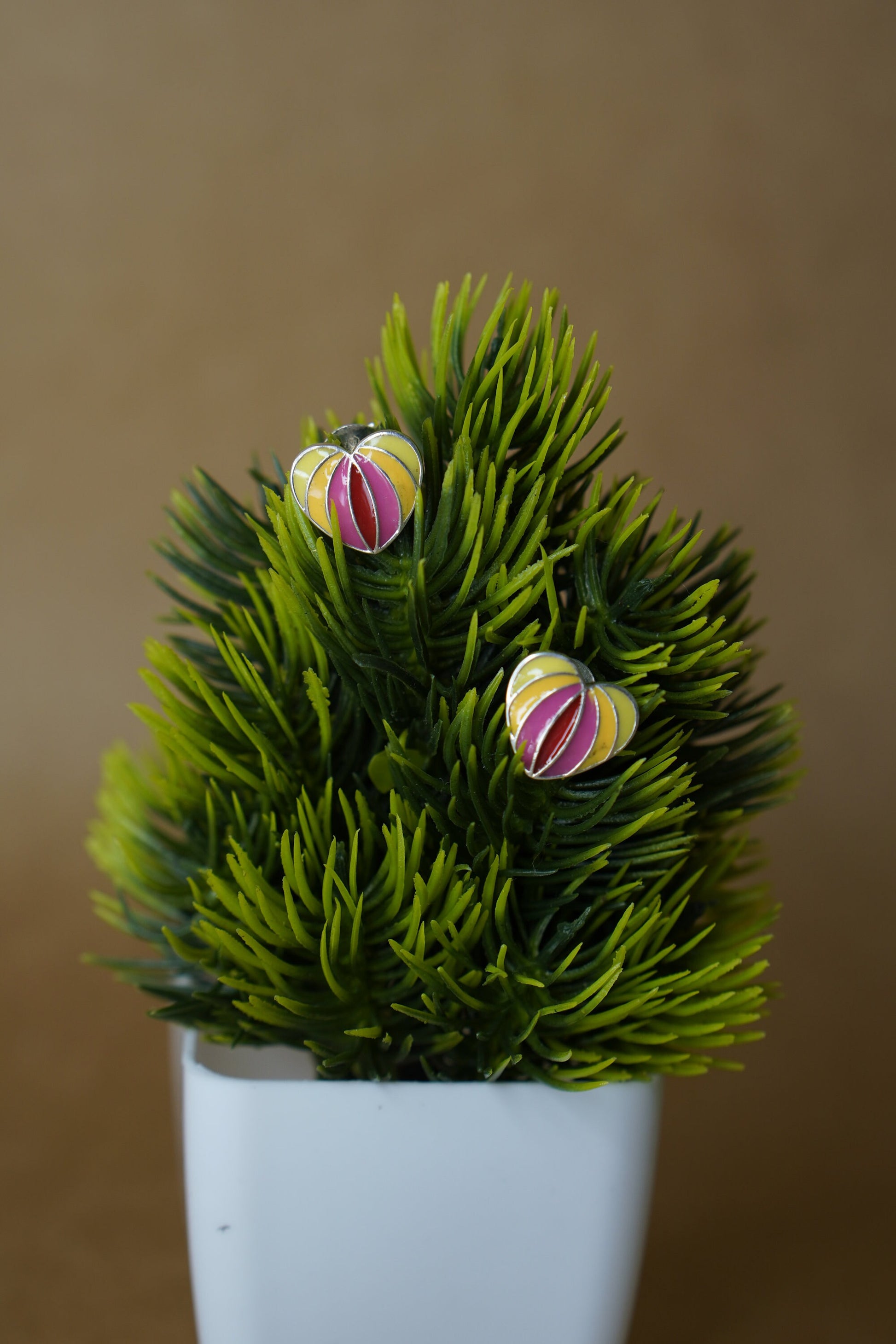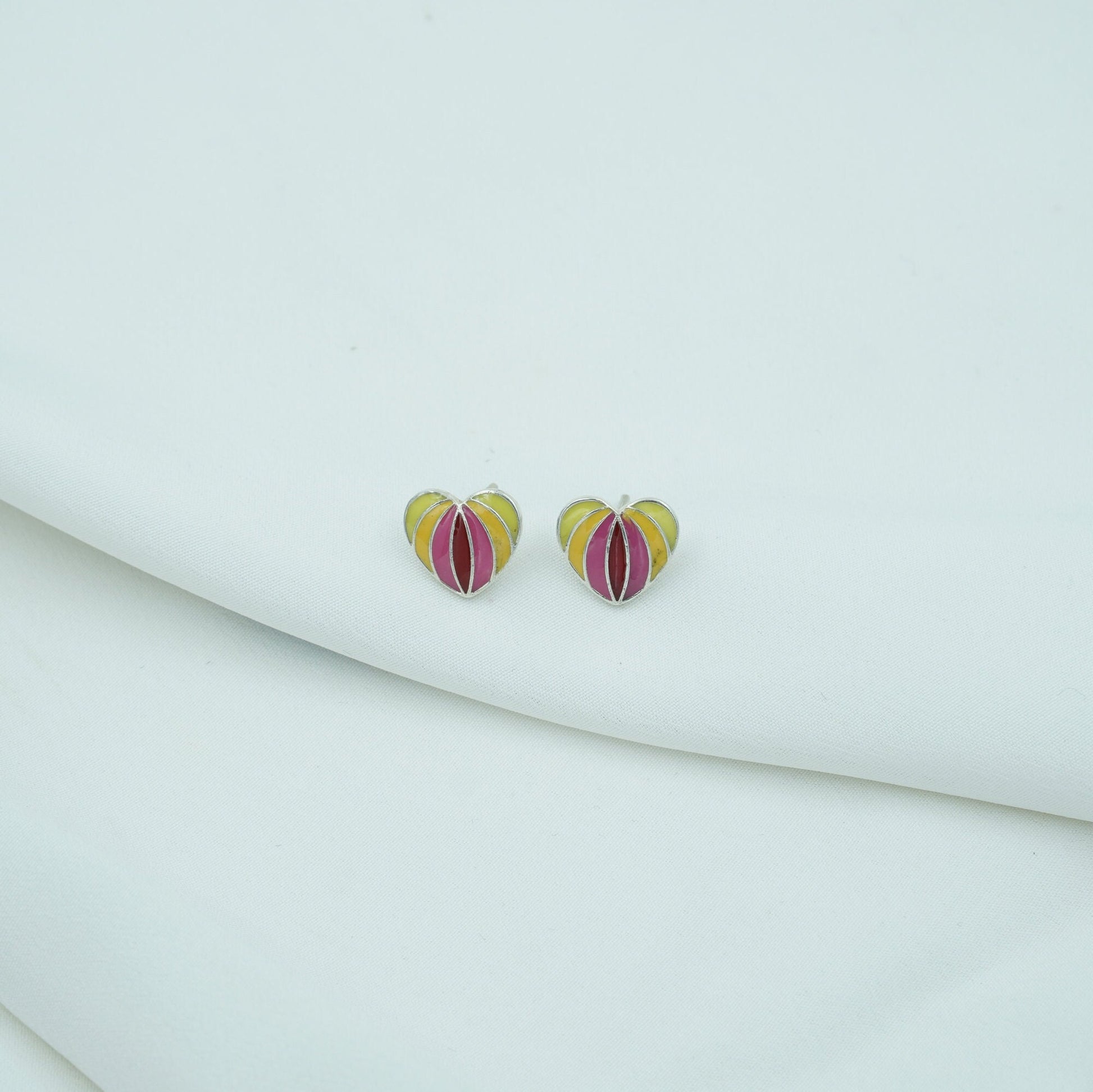 Small in size, powerful in meaning Antarang is a heartfelt expression of color and closeness. These petite enamel studs are shaped like a blooming heart or lotus bud, rendered in warm, radiant hues of red, yellow, and green. Outlined with fine gold-toned lines, their structure reflects harmony, while their colors embody emotion.