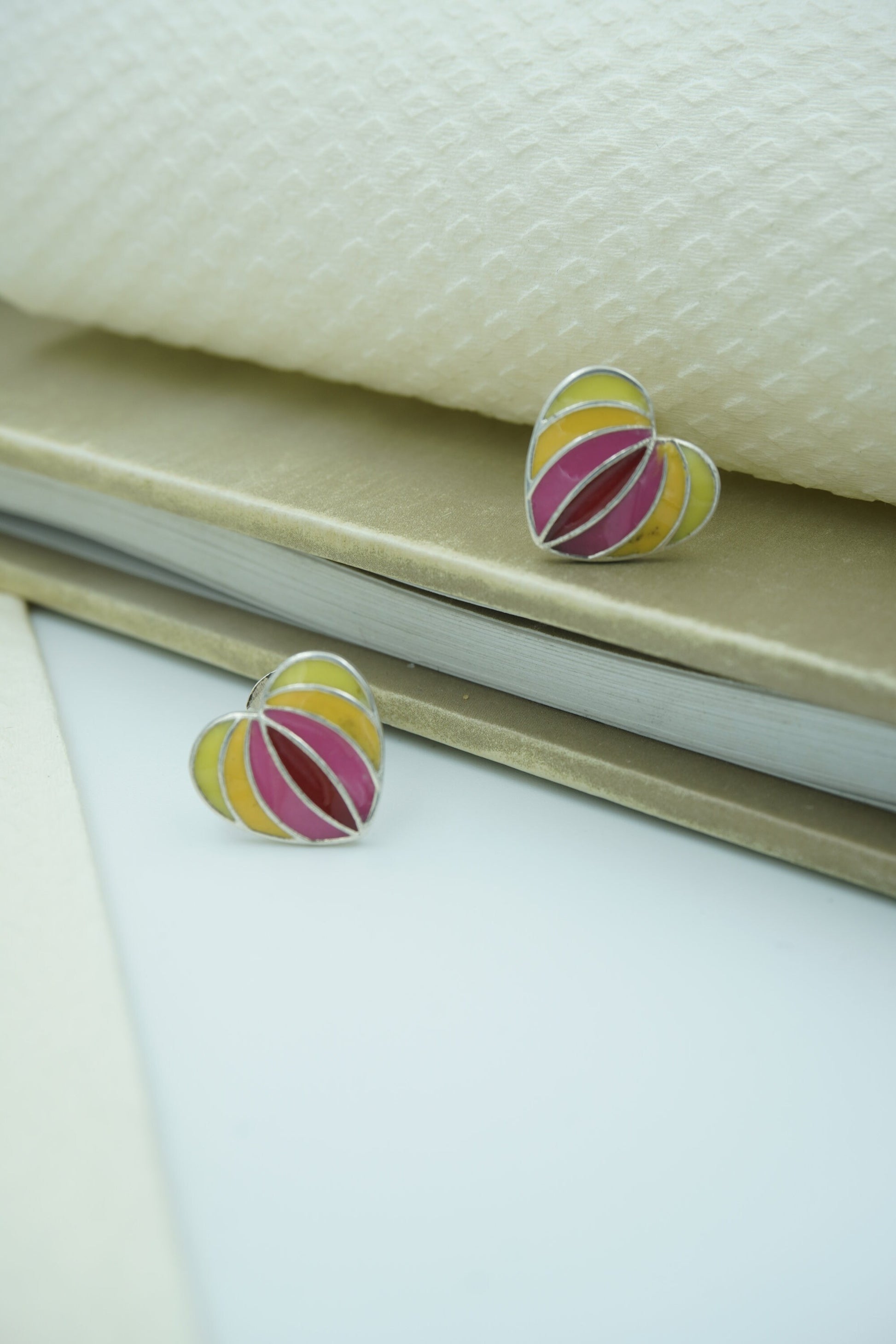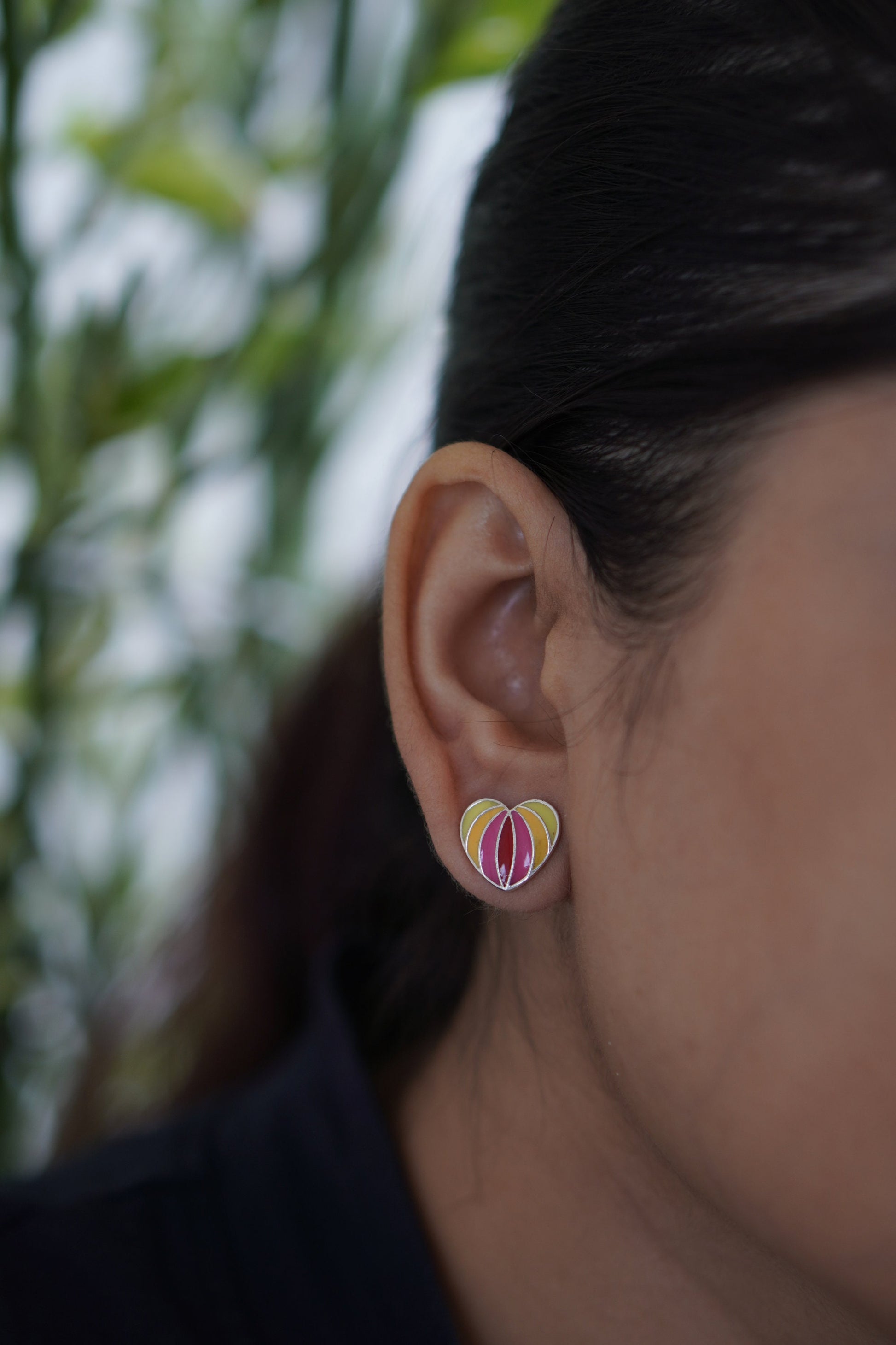 Design: Heart-shaped enamel studs inspired by intimacy and inner beauty.