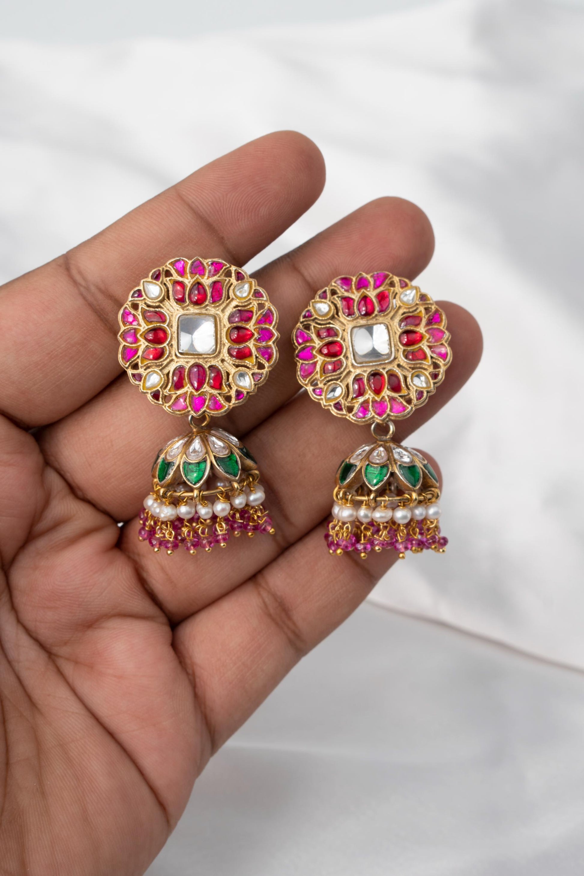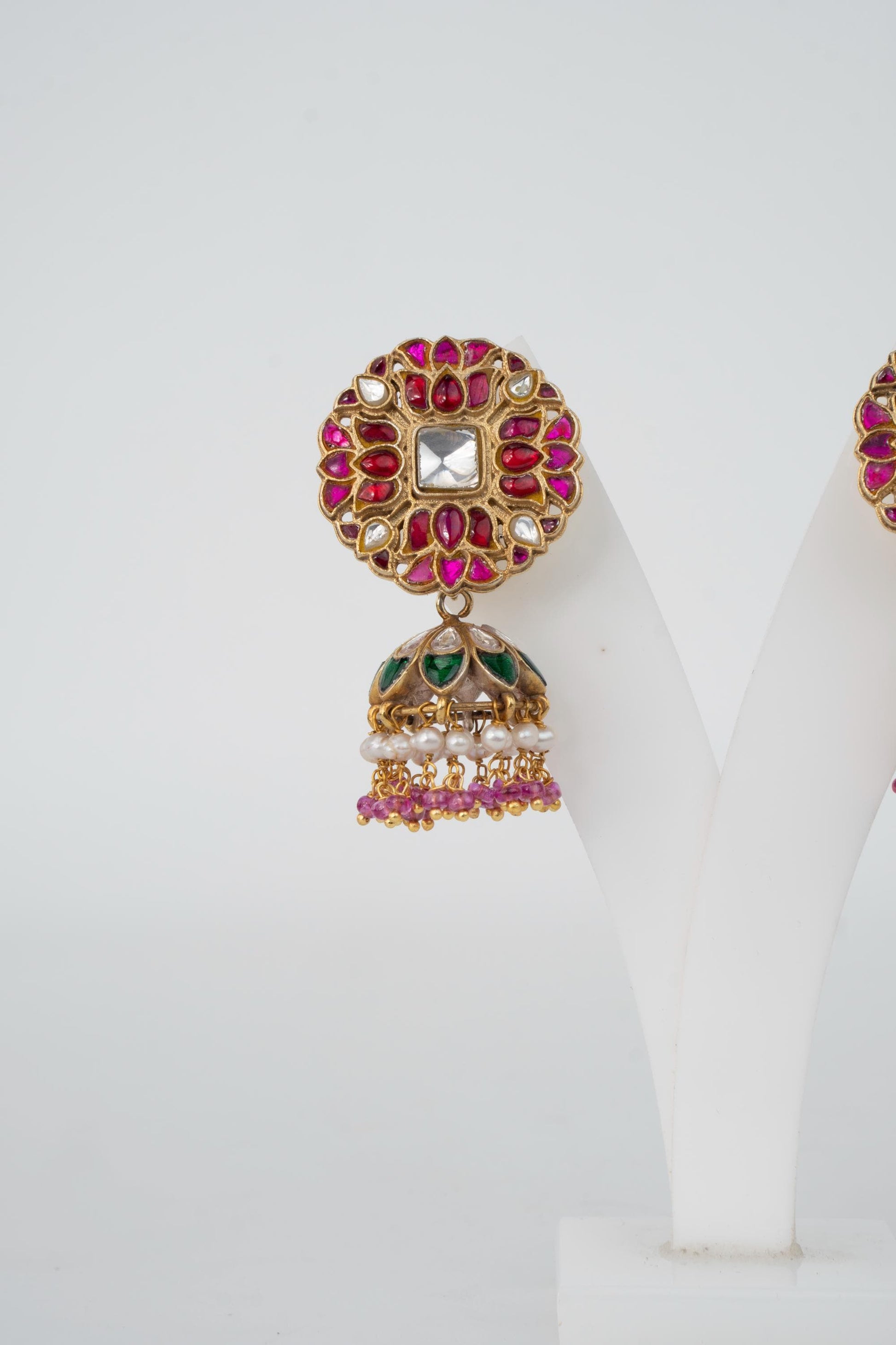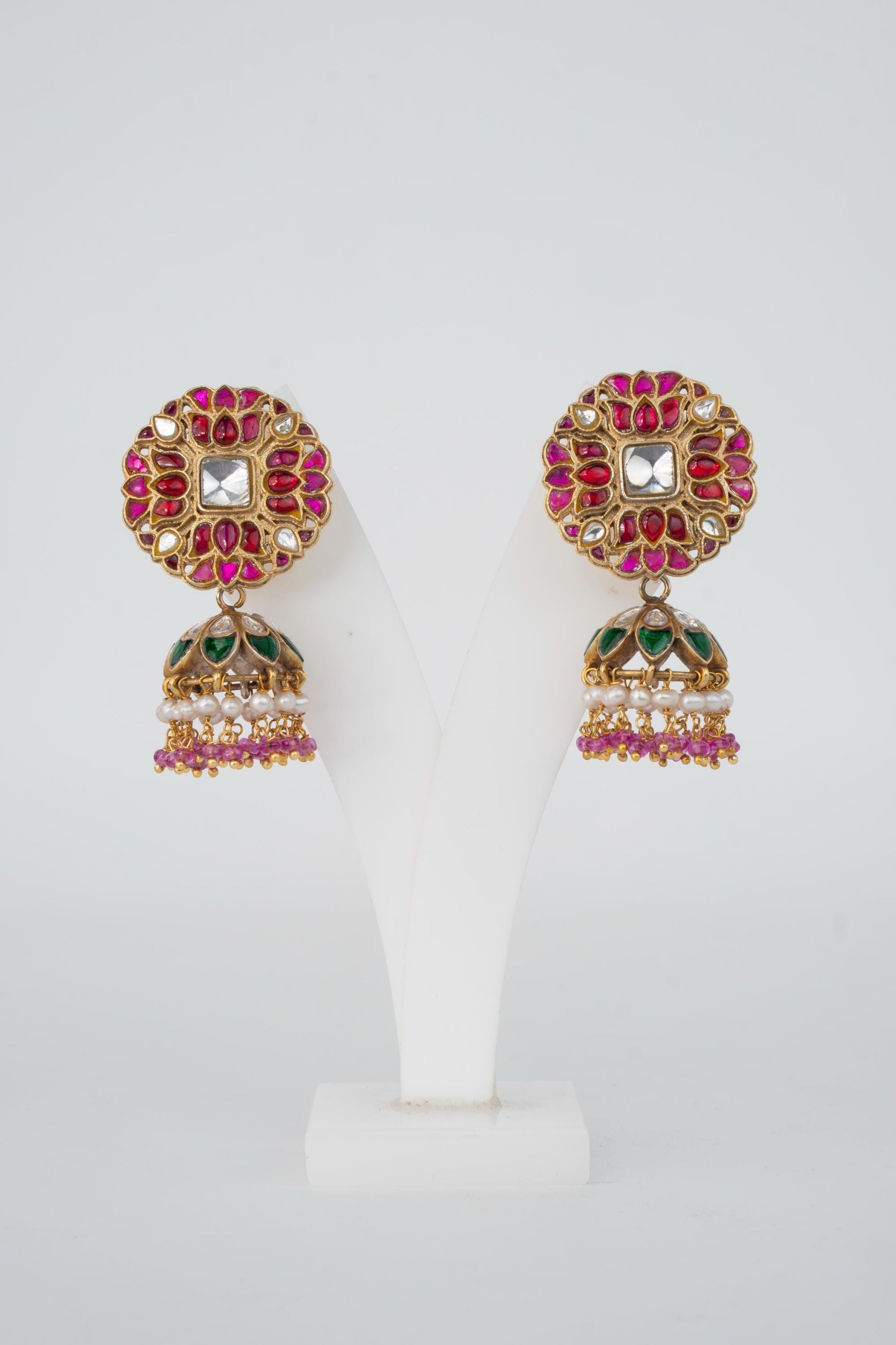 Material Used: 925 Silver with kundan, stone work & pearl drop jhumki.