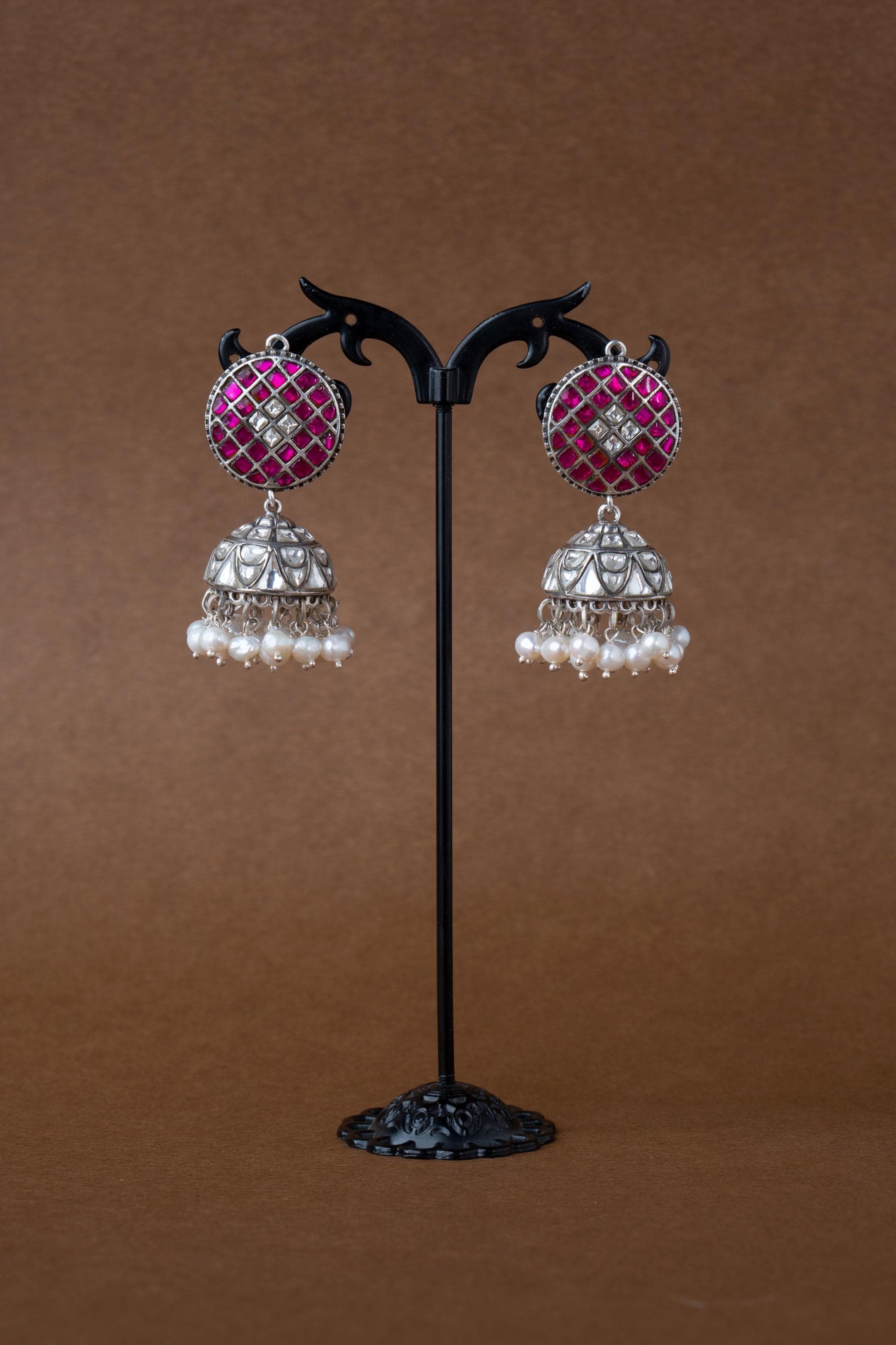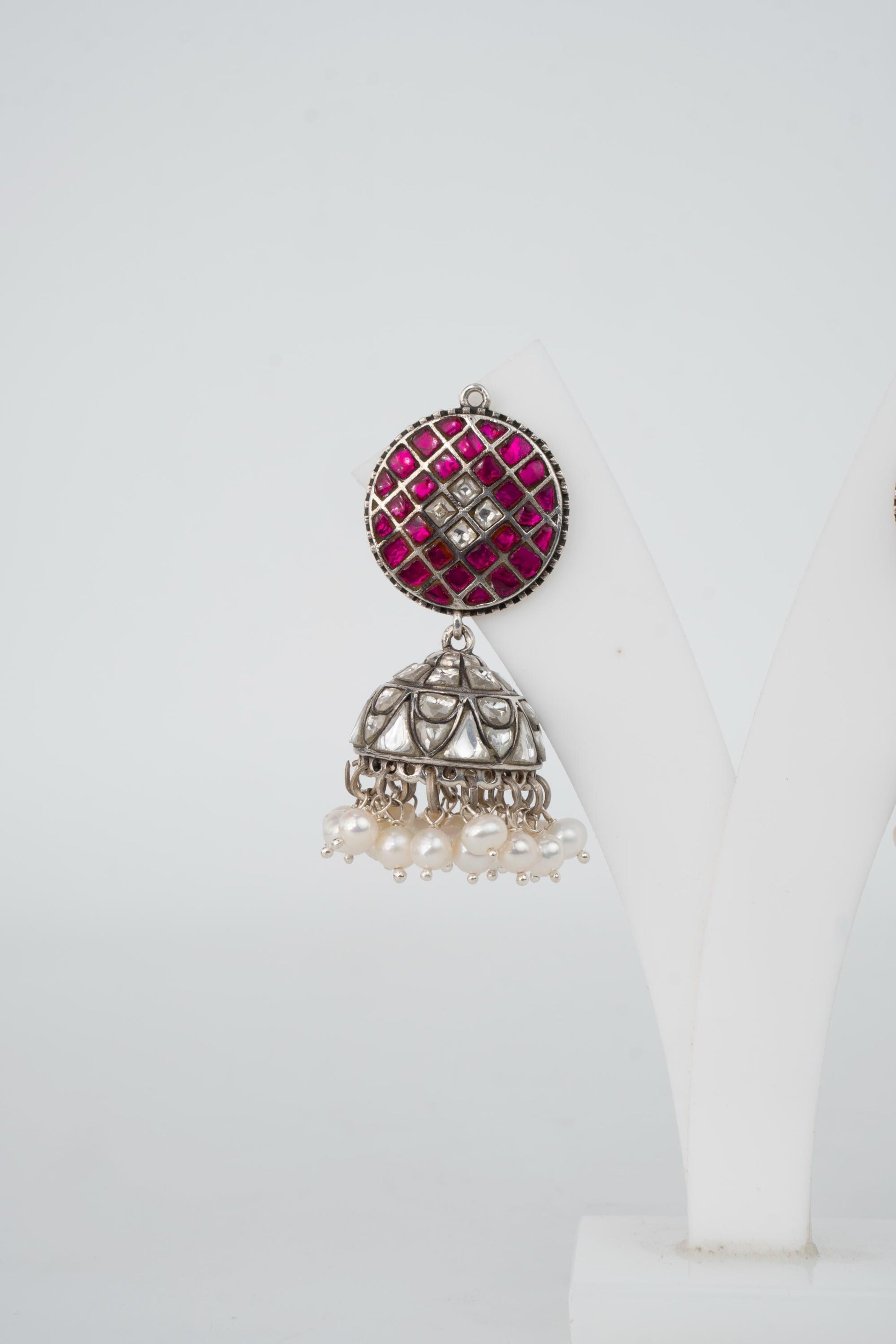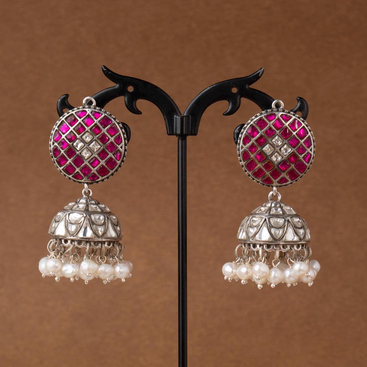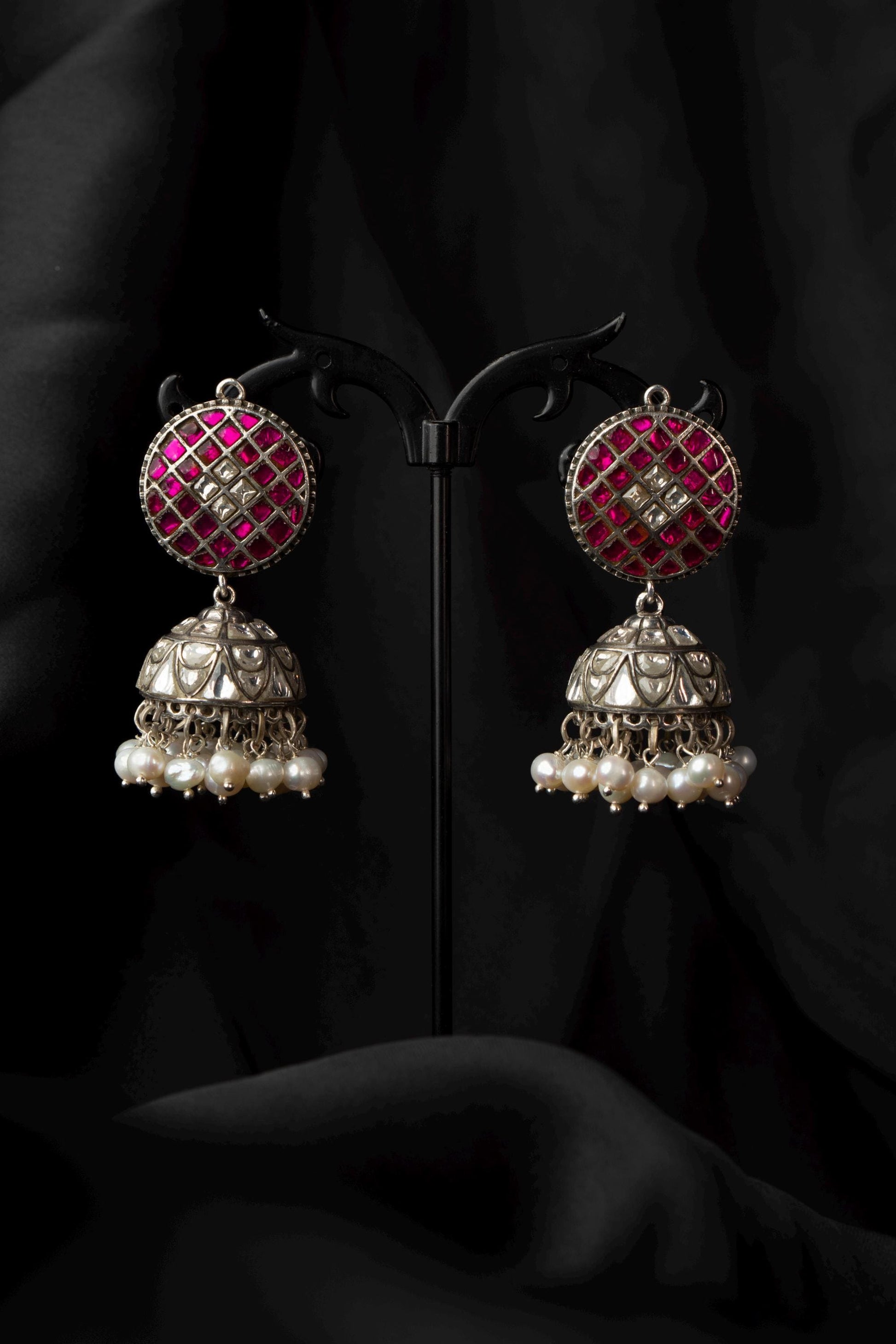 Material Used: 92.5 silver with kundan, stone work & pearl bead jhumki.