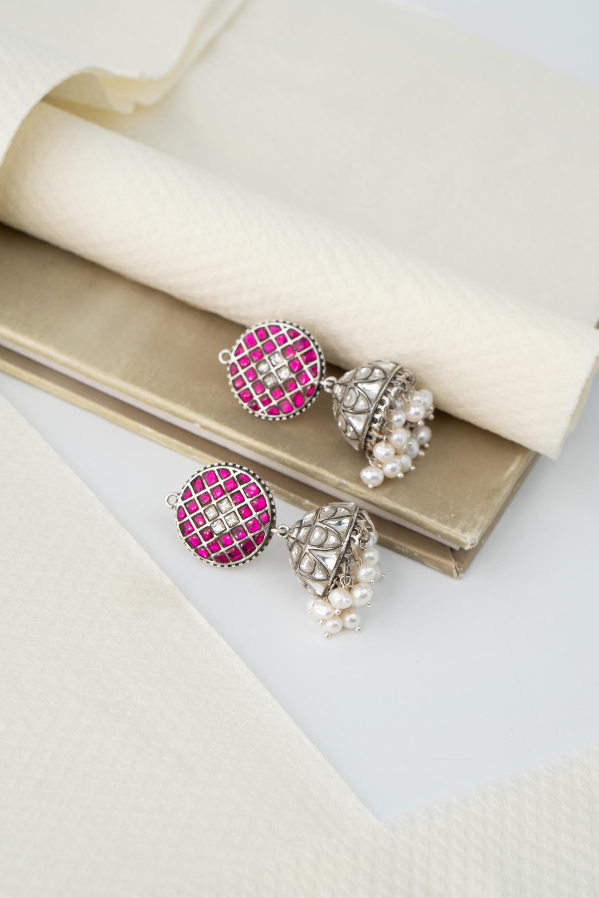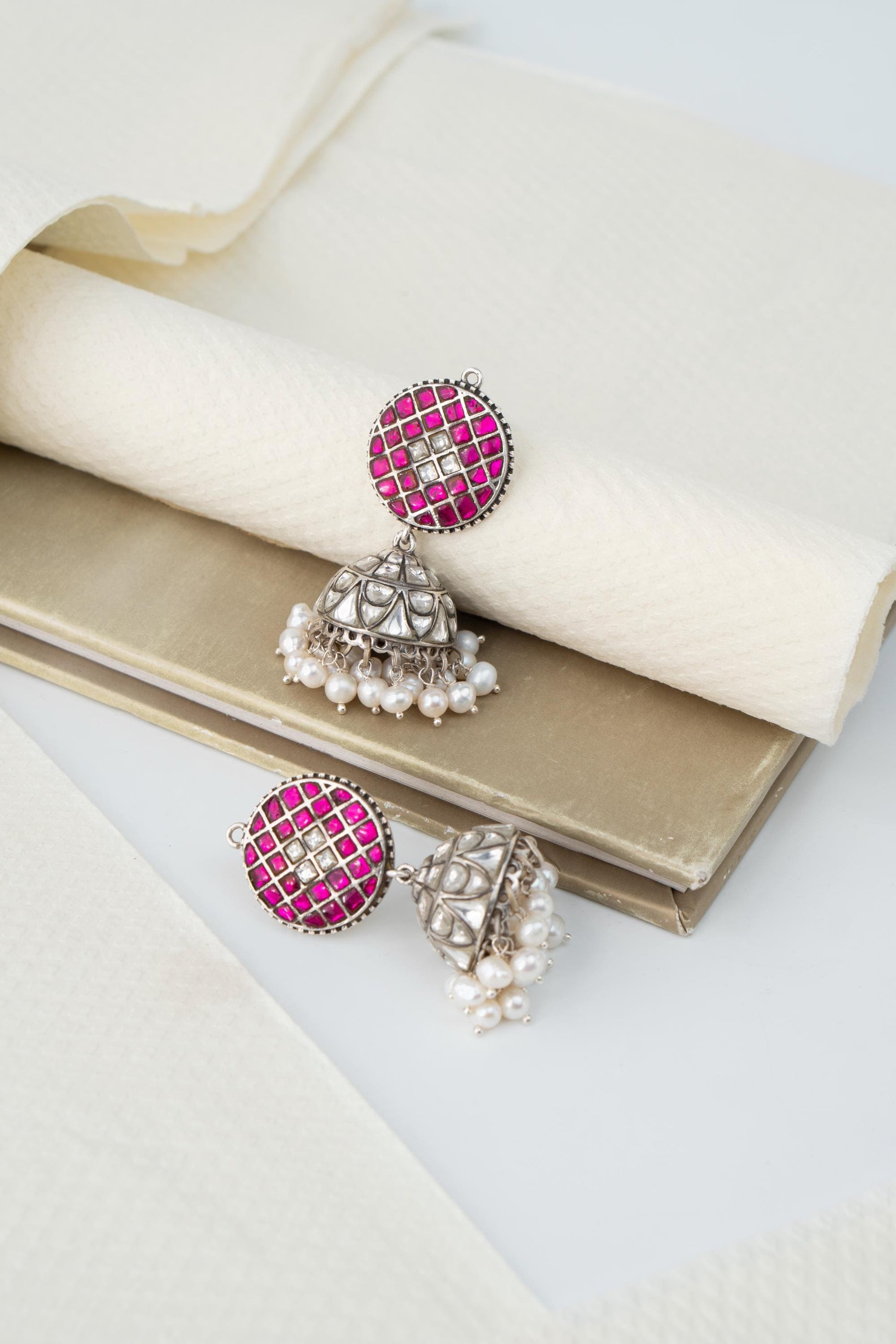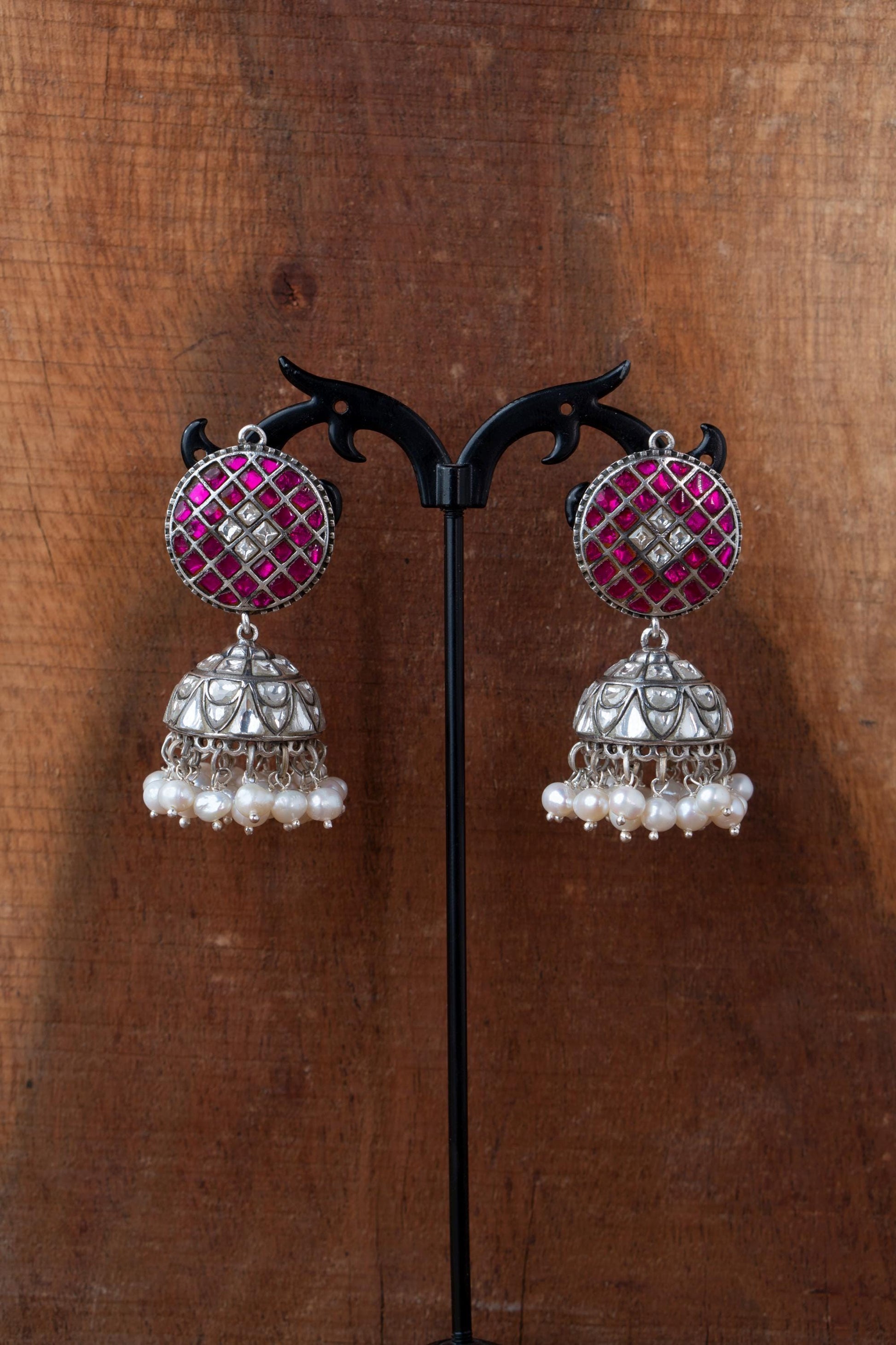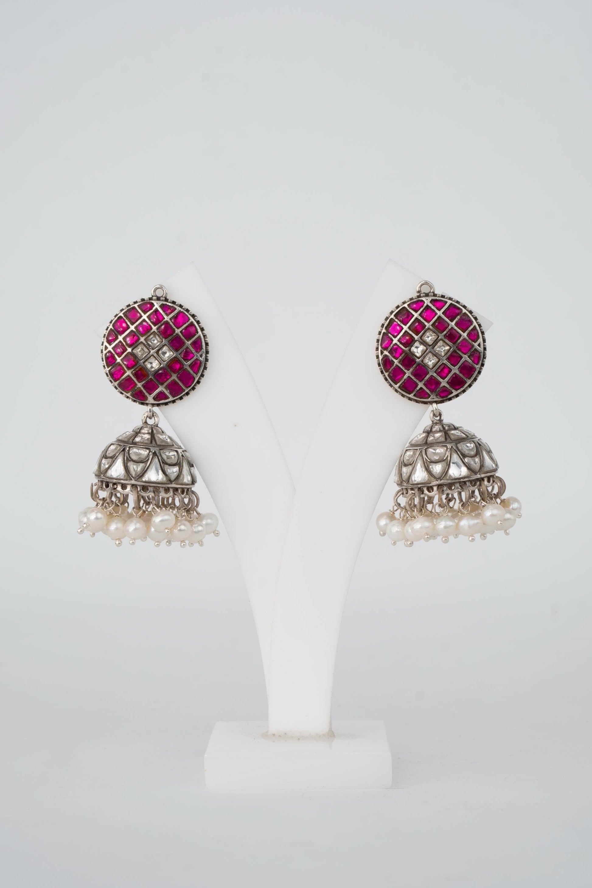Material Used: 92.5 silver with kundan, stone work & pearl bead jhumki.