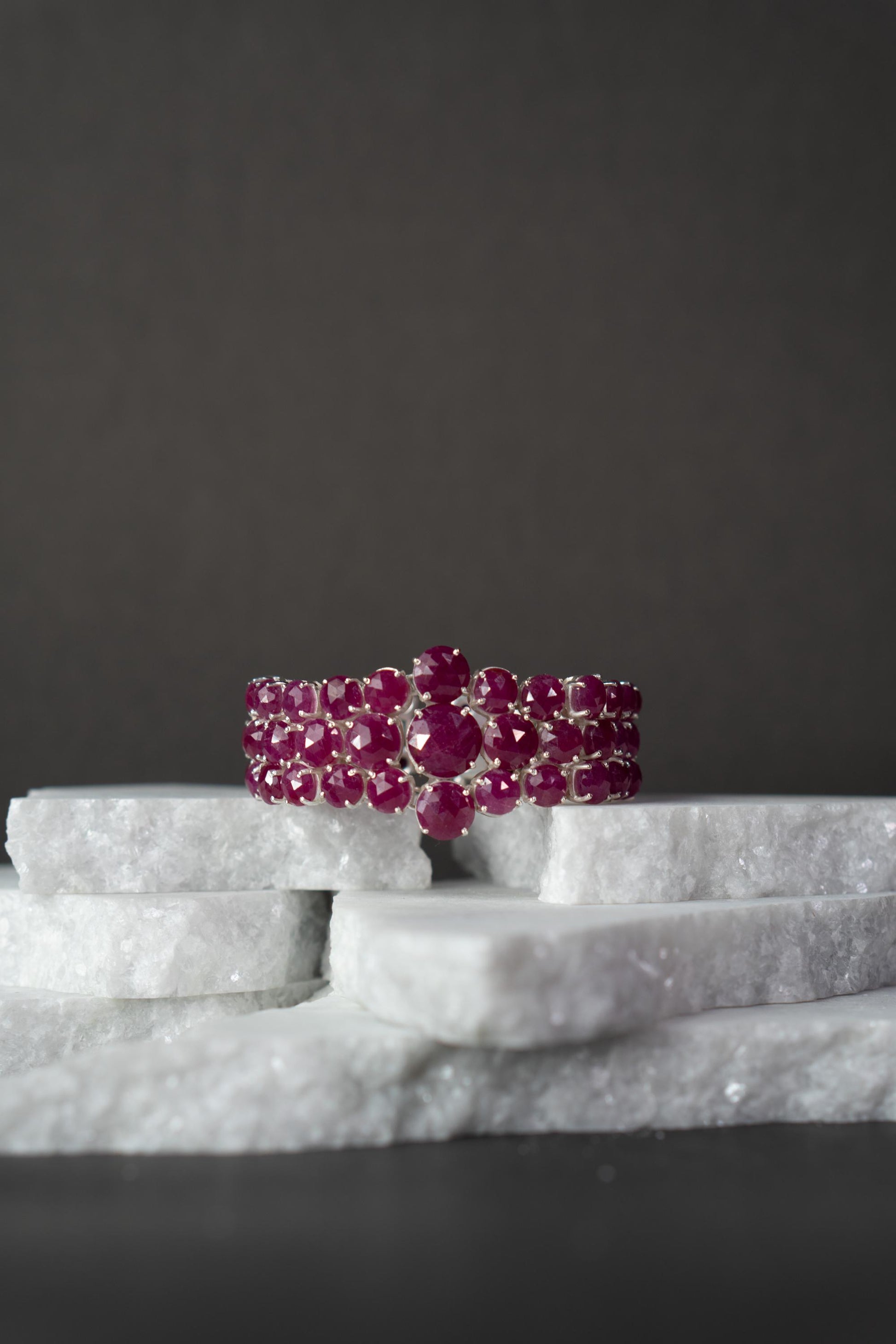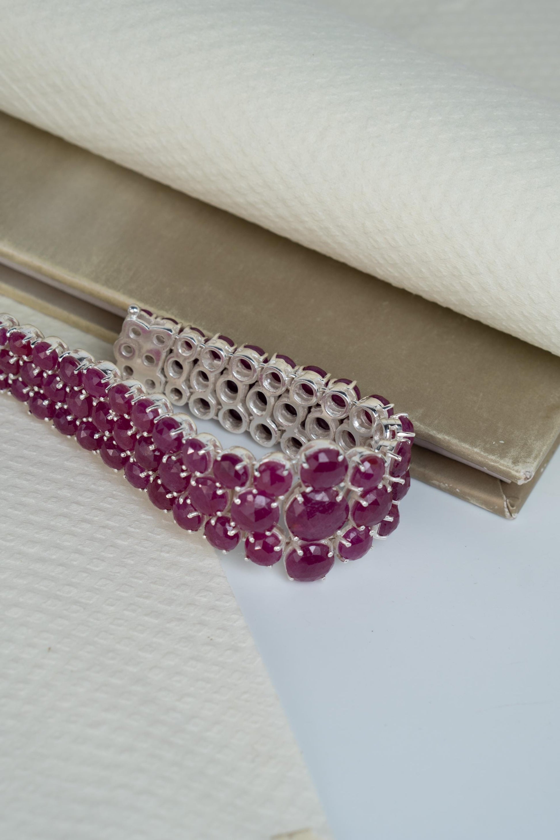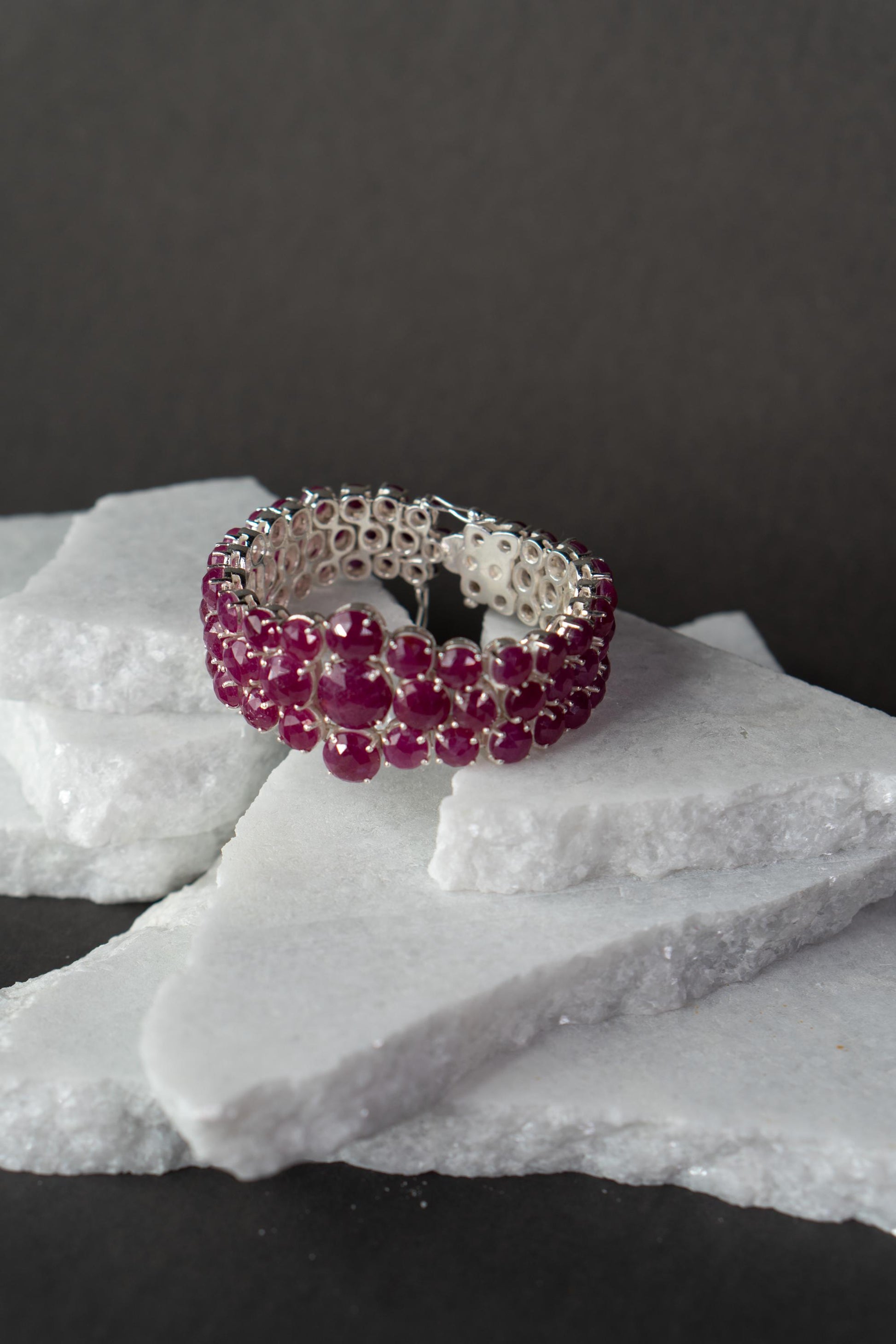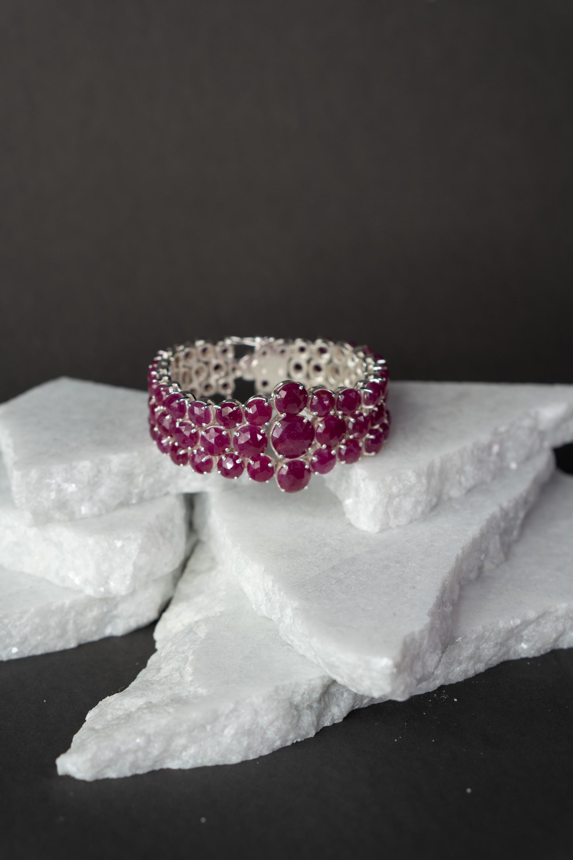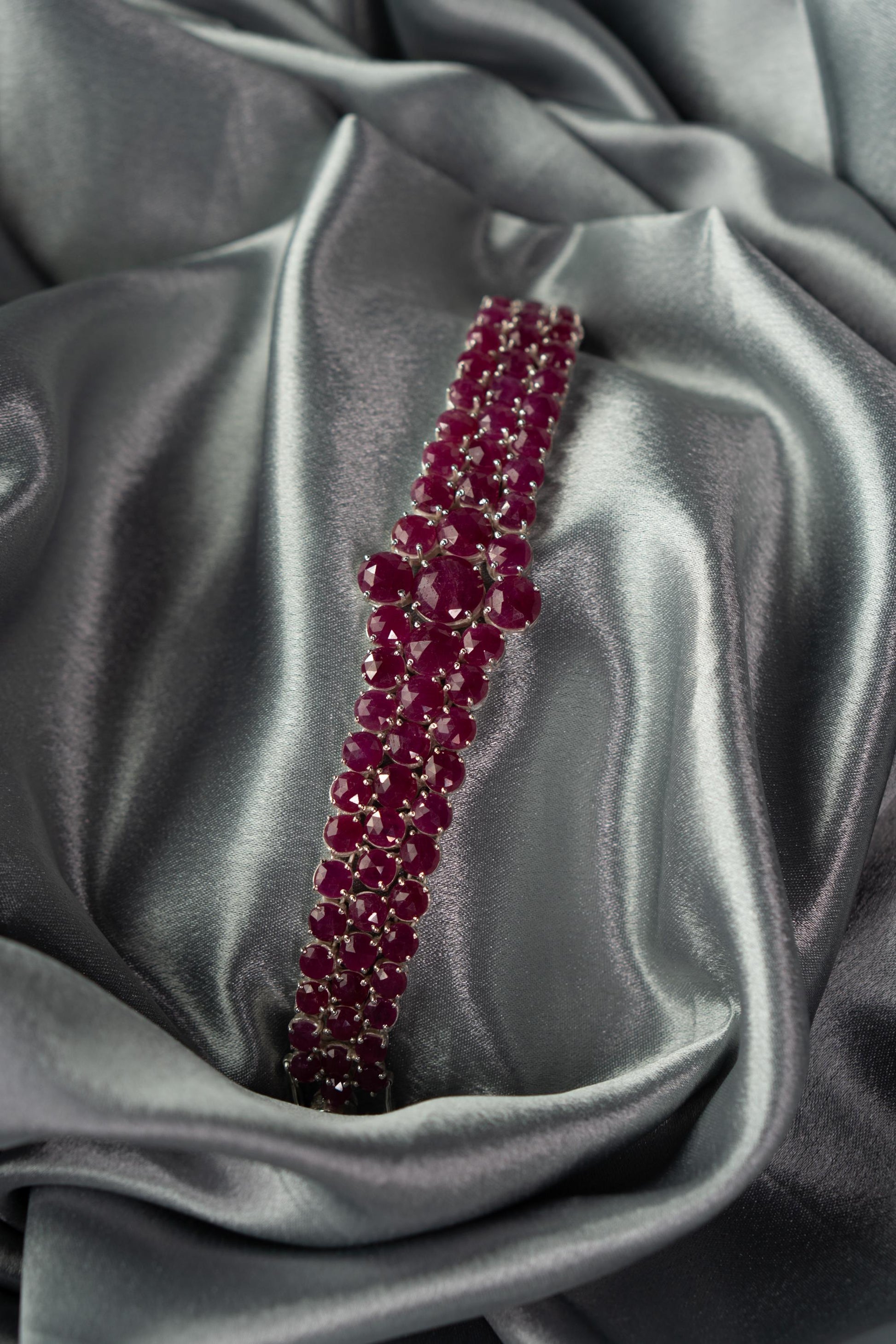 Elevate your traditional look with the Ruhani Bracelet, a soulful blend of elegance and craftsmanship. This handcrafted beauty features rich ruby natural stones arranged in a multi-strand design, with a delicate floral cluster at its heart, symbolizing grace and femininity. Made from pure 925 sterling silver, Ruhani is as timeless as it is beautiful. Whether you’re dressing for a wedding or a festive celebration, this bracelet adds just the right amount of sparkle and sophistication.