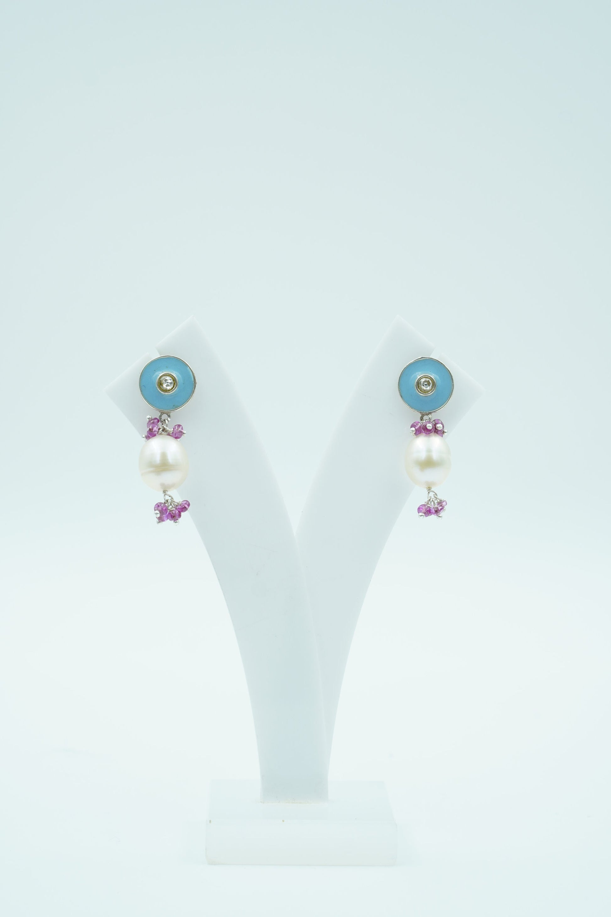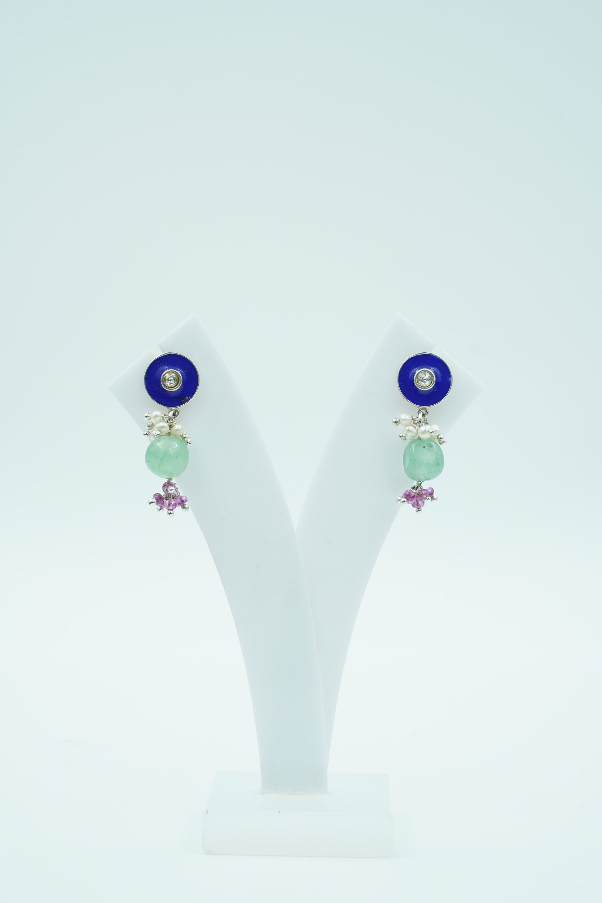Design: Dual-tone enamelled studs with multigem dangle.