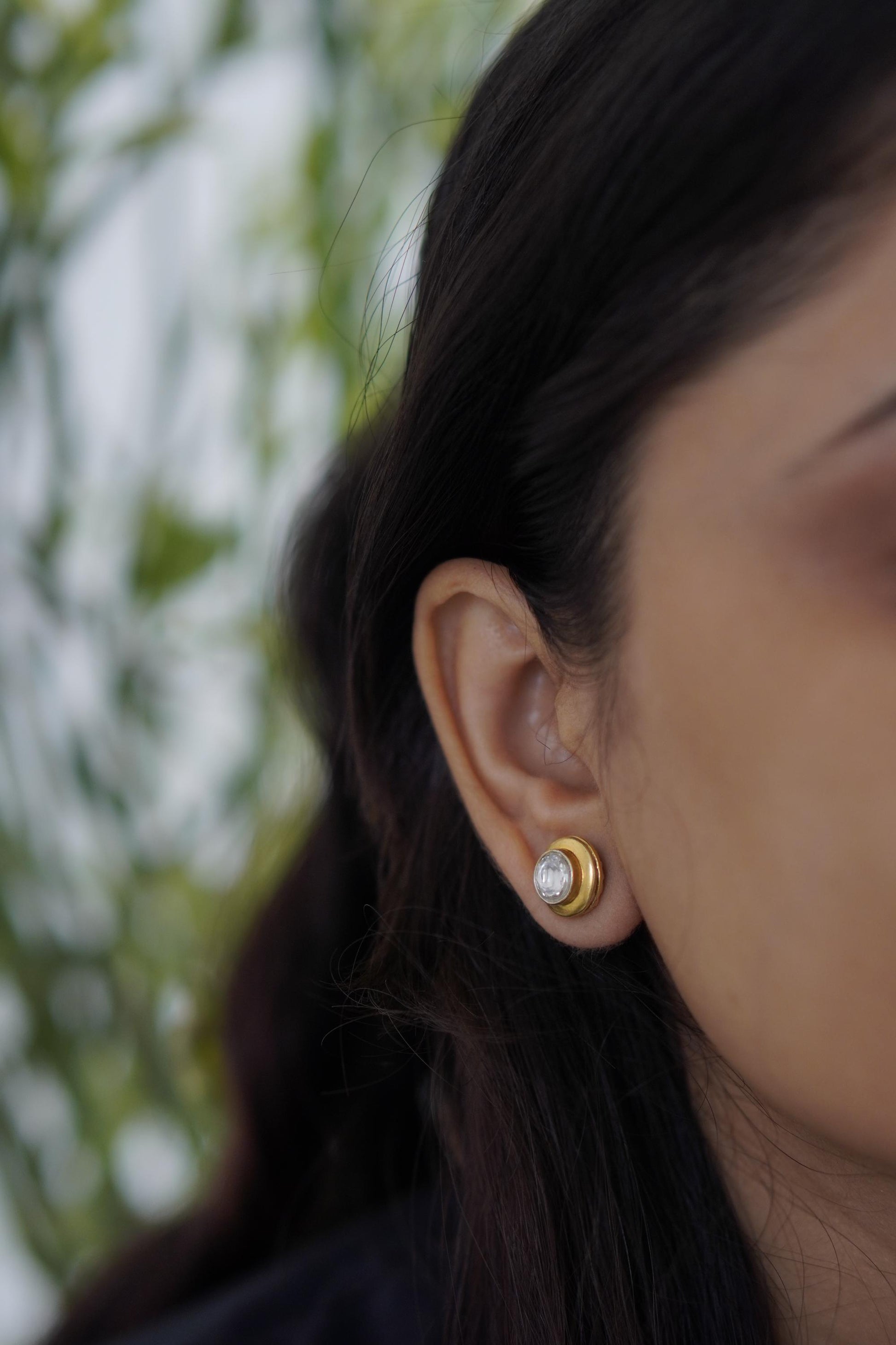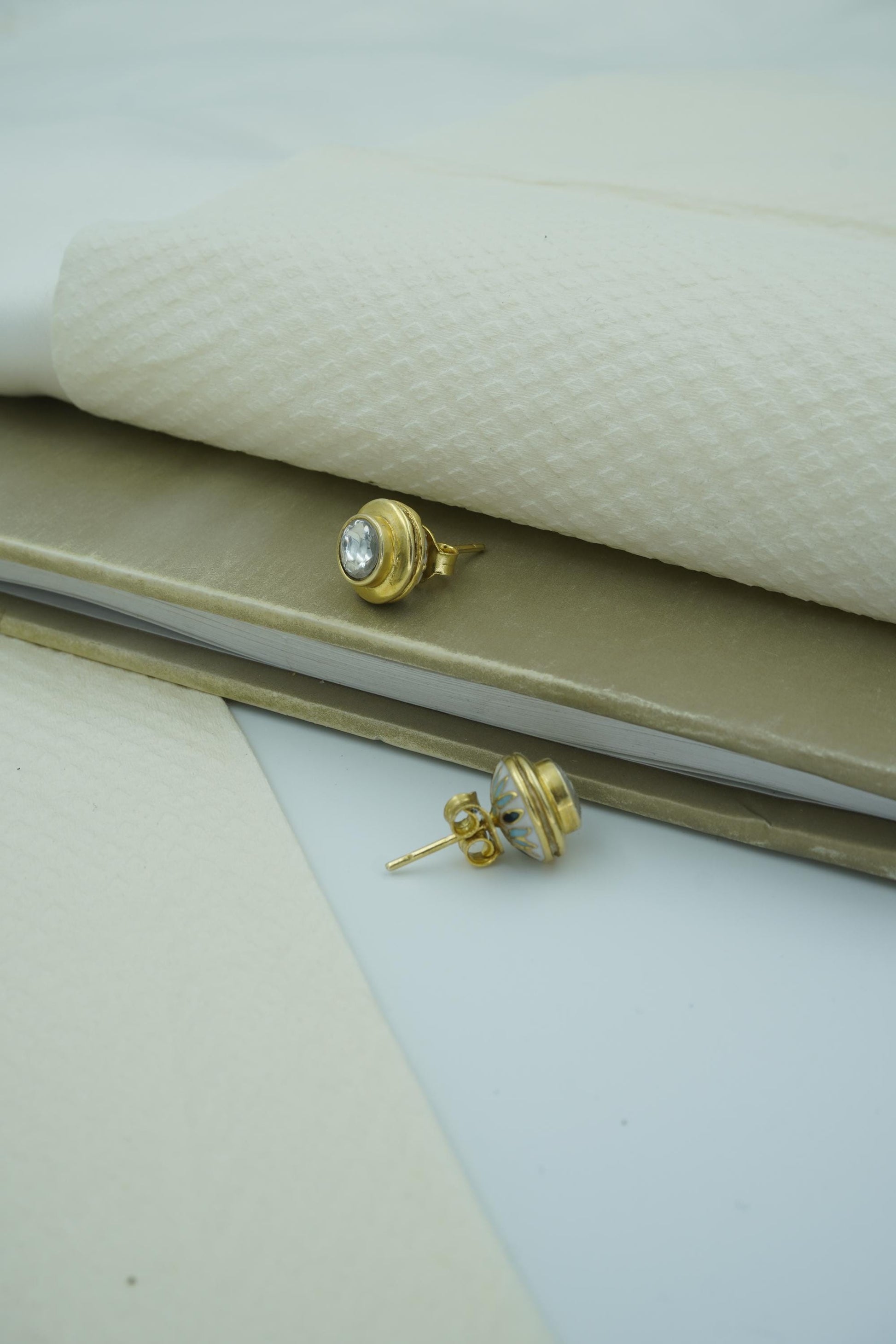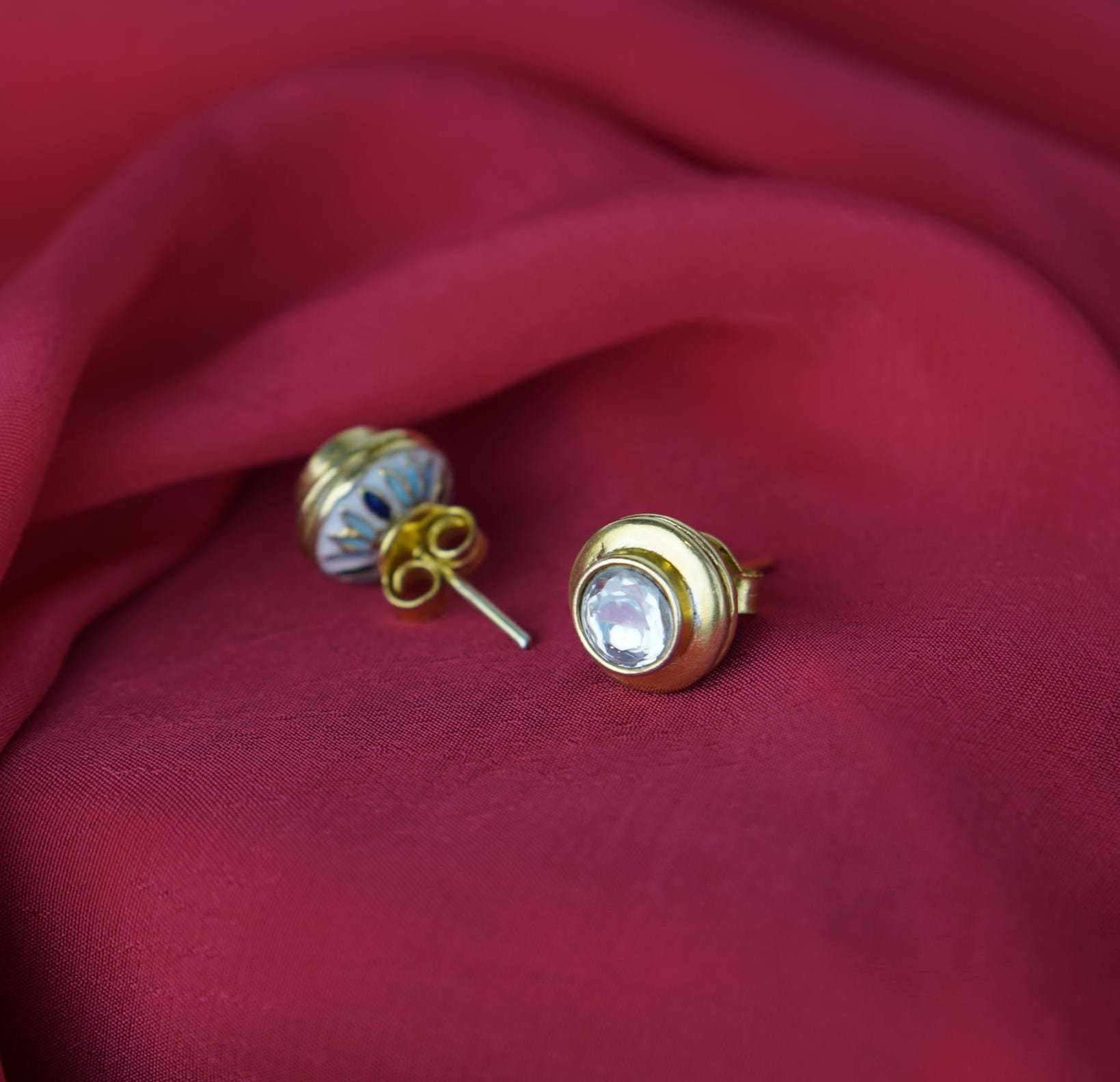 Illuminate your look with KIRA, a radiant pair of stud earrings inspired by the elegance of natural light and timeless design. Crafted with a starburst floral pattern, each earring features shimmering center stone inlays that reflect a spectrum of colors, just like sunlight dancing on water. KIRA brings a graceful, luminous charm to any outfit.
