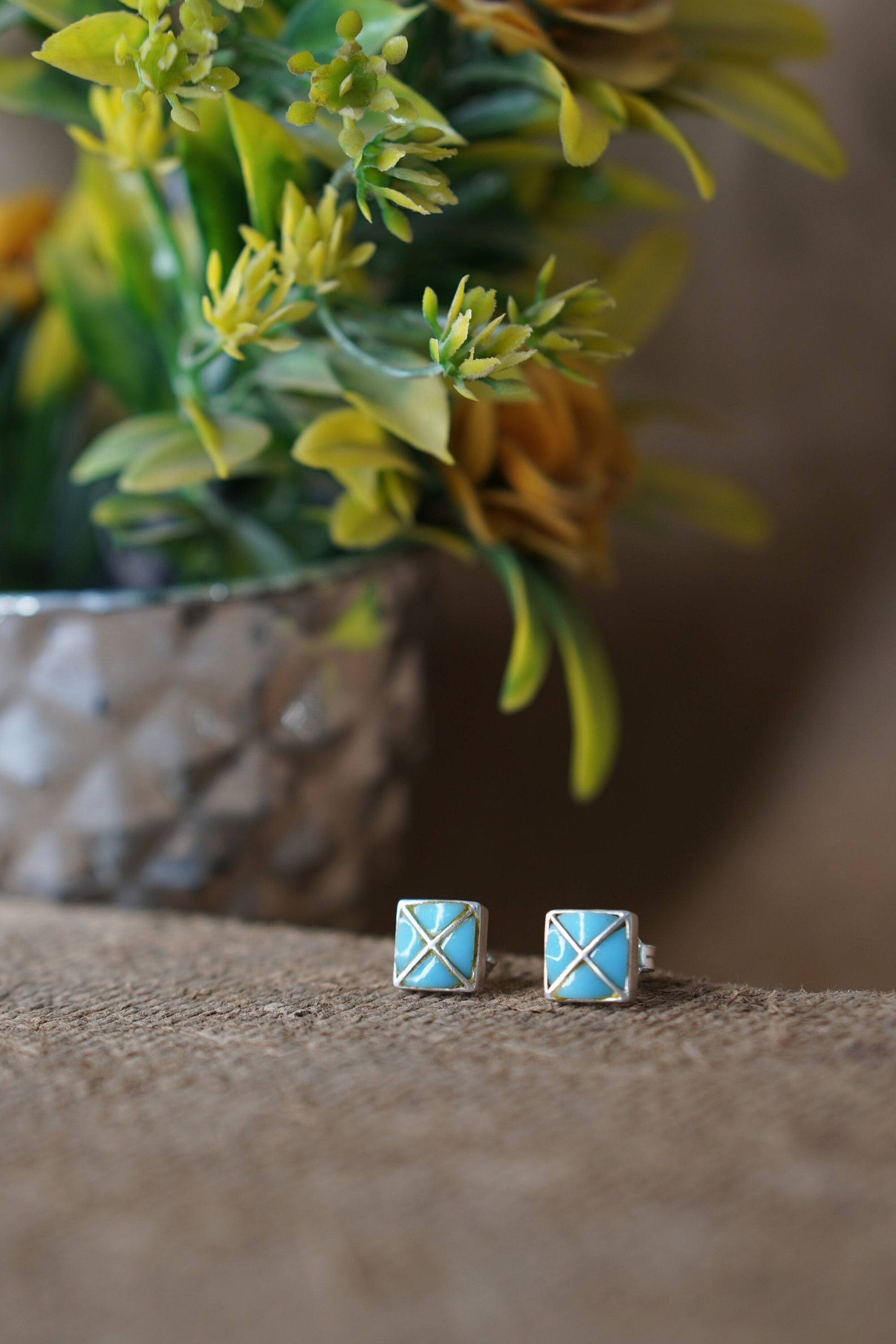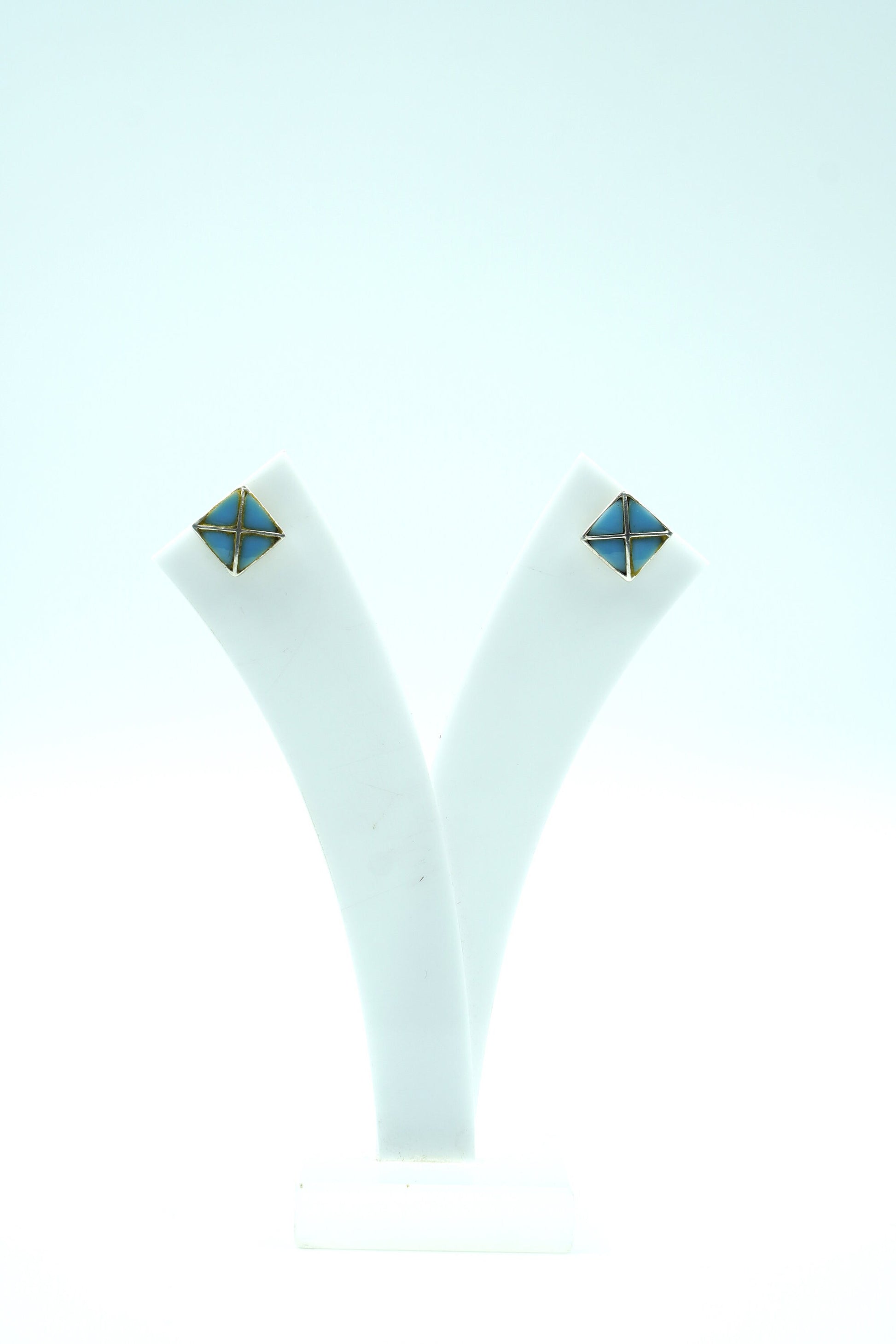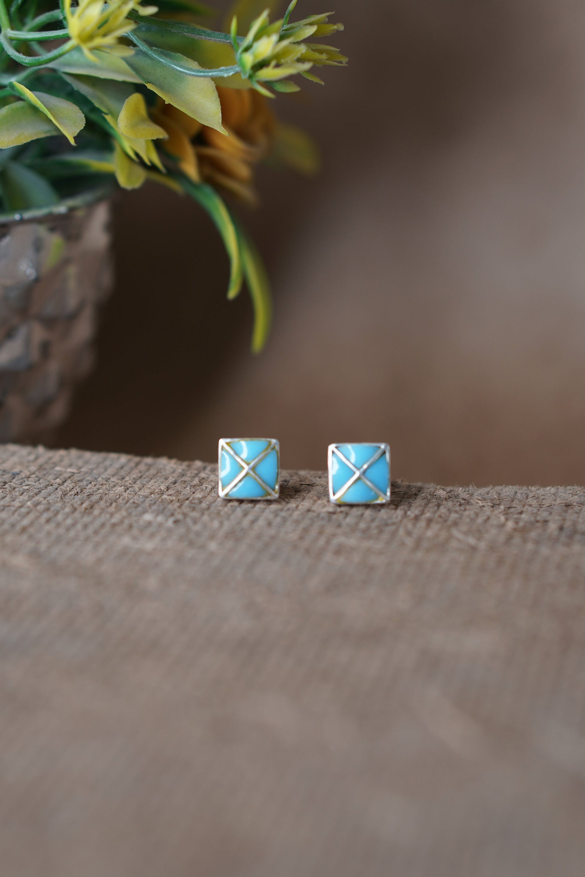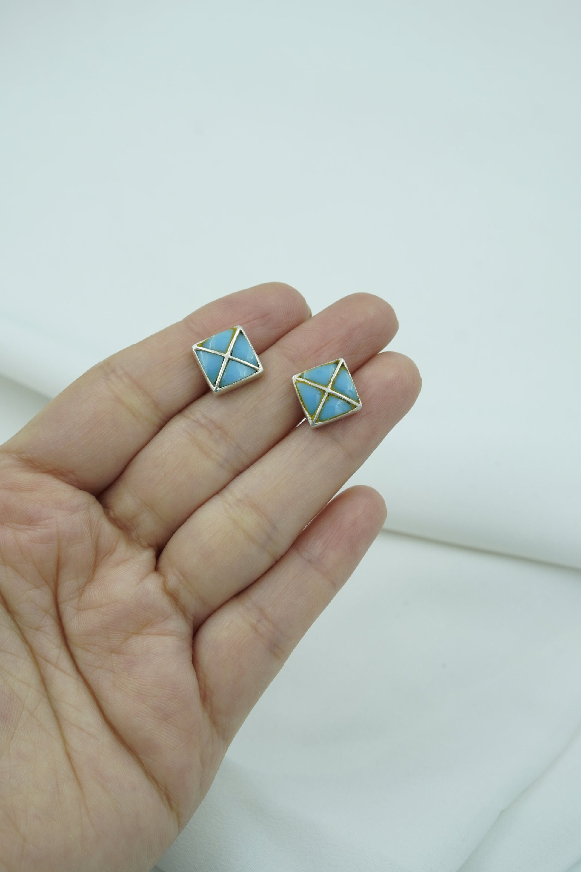 Let your style take flight with AVI, a minimalist pair of square stud earrings inspired by the serenity of open skies. Crafted with sky-blue enamel and sleek gold-toned crisscross lines, these earrings are as light and uplifting as a breath of fresh air. Compact in size yet striking in design, AVI is a celebration of clarity, balance, and subtle power.